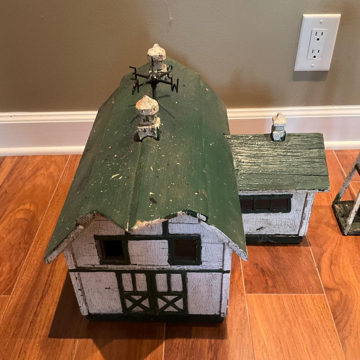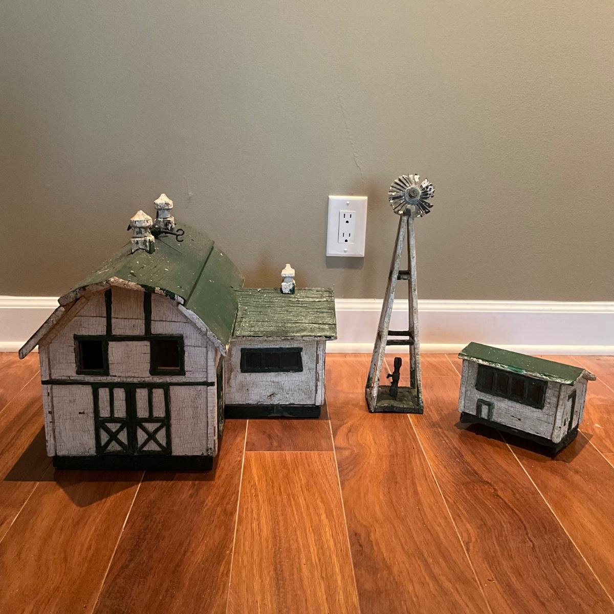 U092 Primitive Antique Folk Art Barn , Windmill, Chicken Coop
