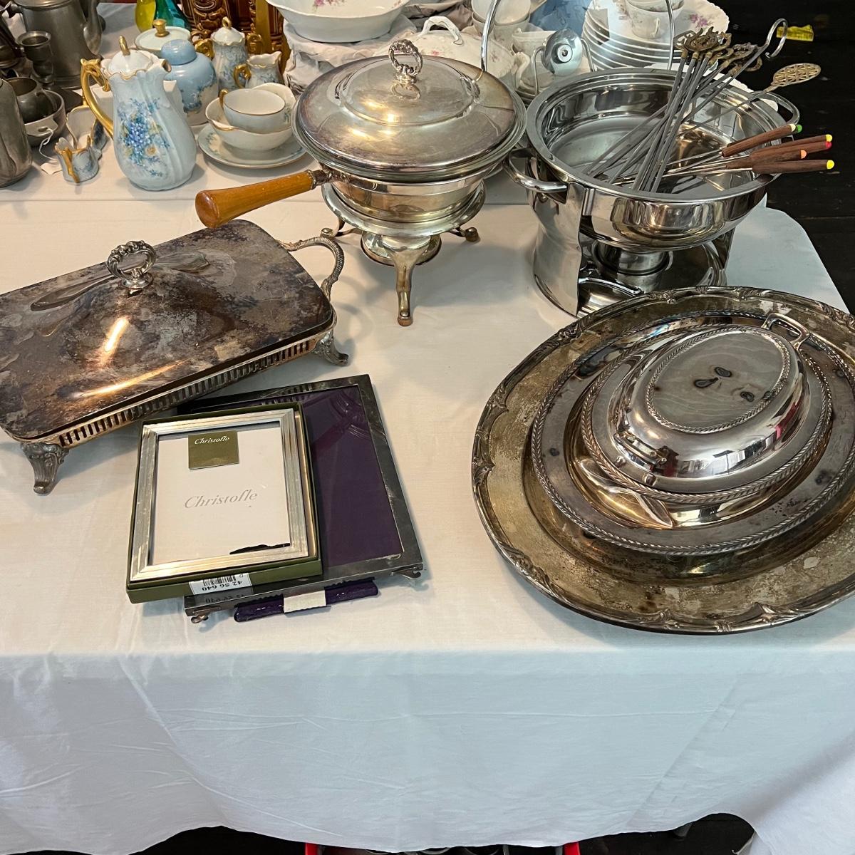 Various platters and serving pieces with Christolfe frame