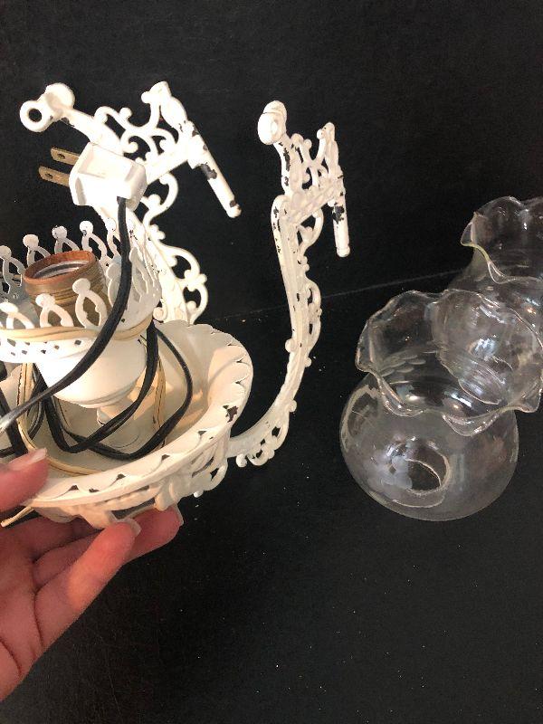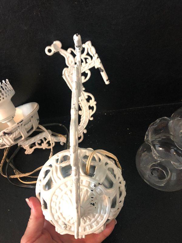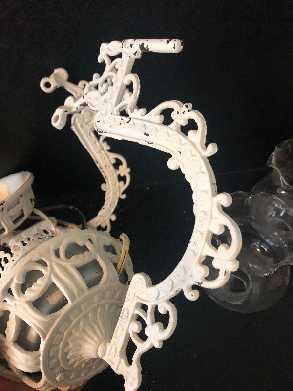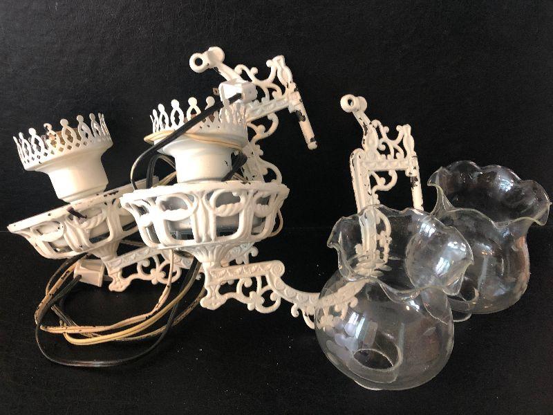 Wall hanging oil lamp arms. These do not come with the wall hinge. Will need to be purchased separately. Please see pictures for contents of the lot, condition of the lot, and any measurements of the item. Thank you for looking and happy bidding!