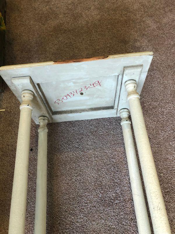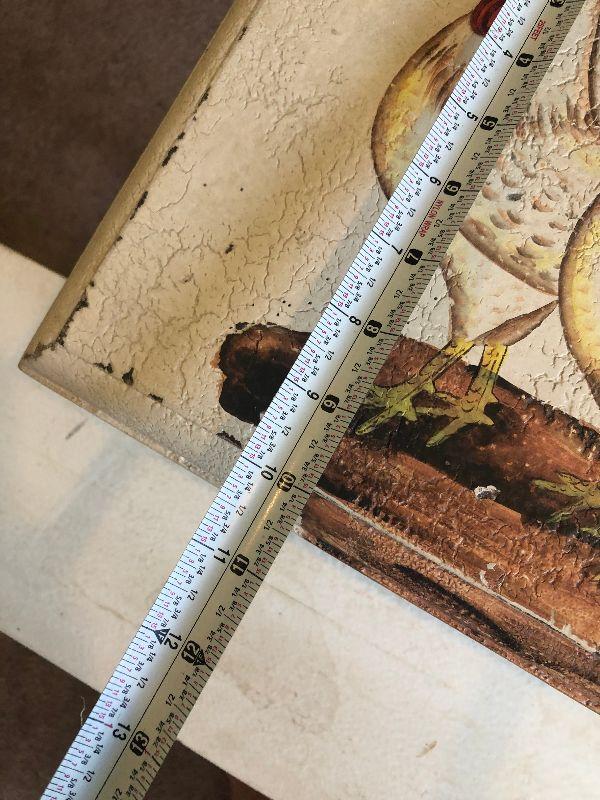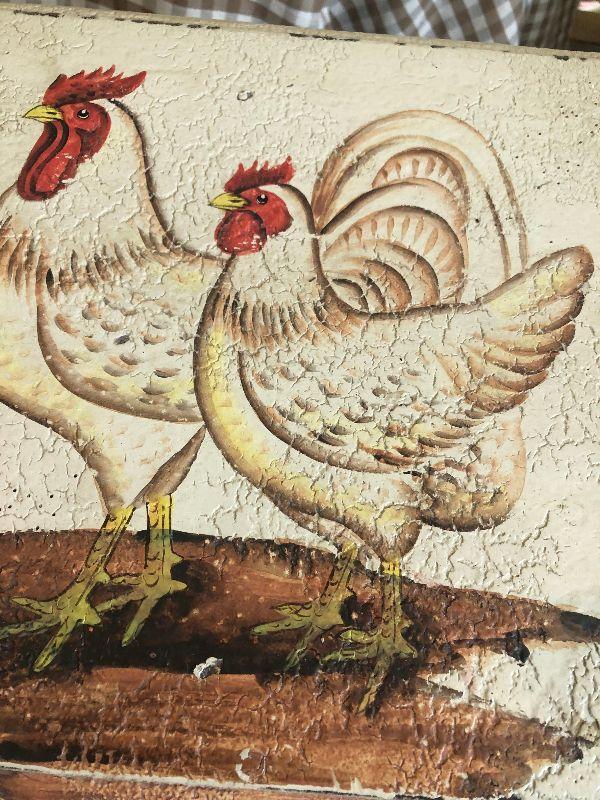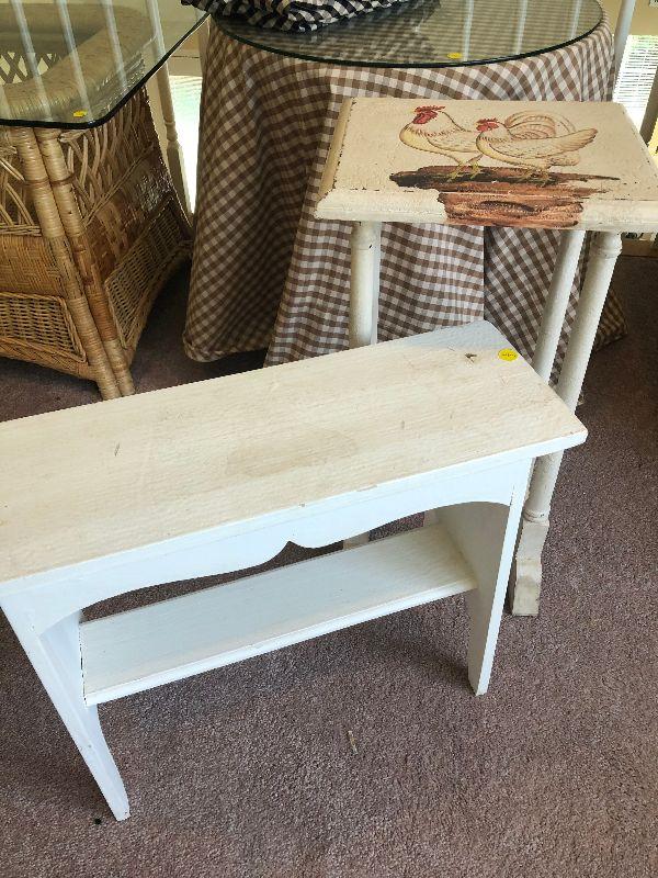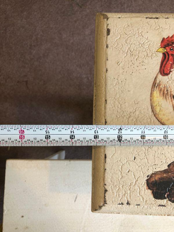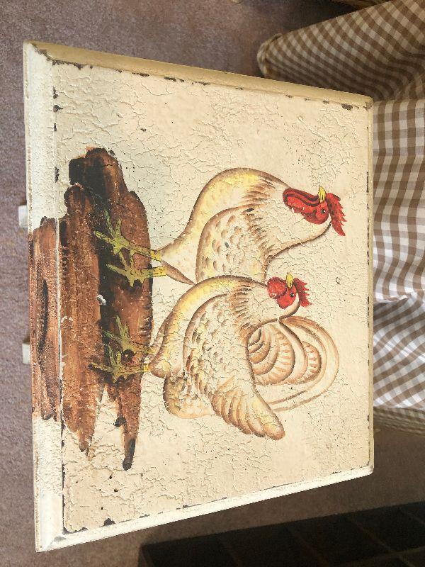 Nice side table painted with chickens on top and a small bench. Both are perfect for inside or porch, think plants! Please see pictures for contents of the lot, condition of the lot, and any measurements of the item. Thank you for looking and happy bidding!