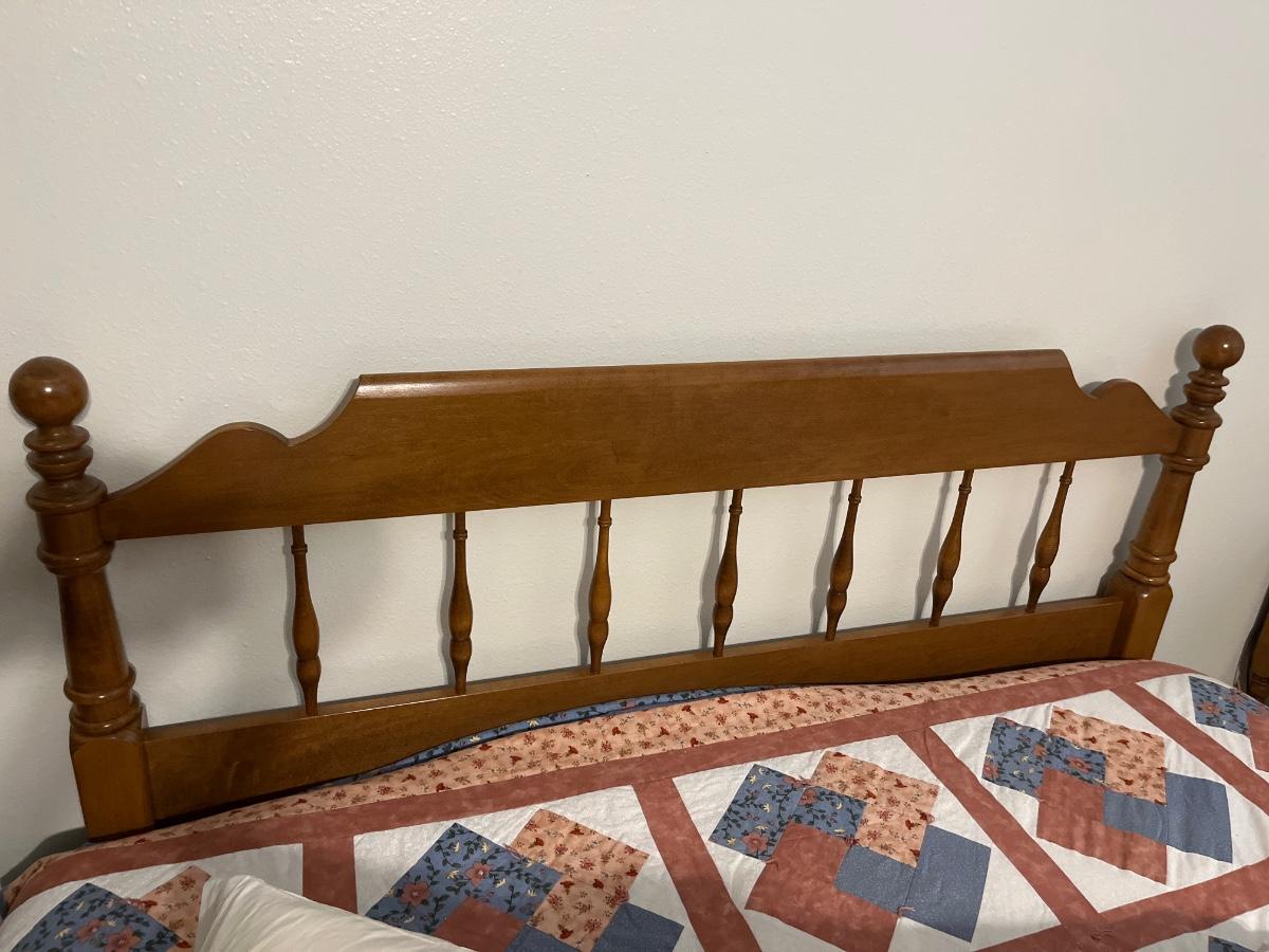 Headboard in excellent condition, includes mattress set, sheet set & quilt