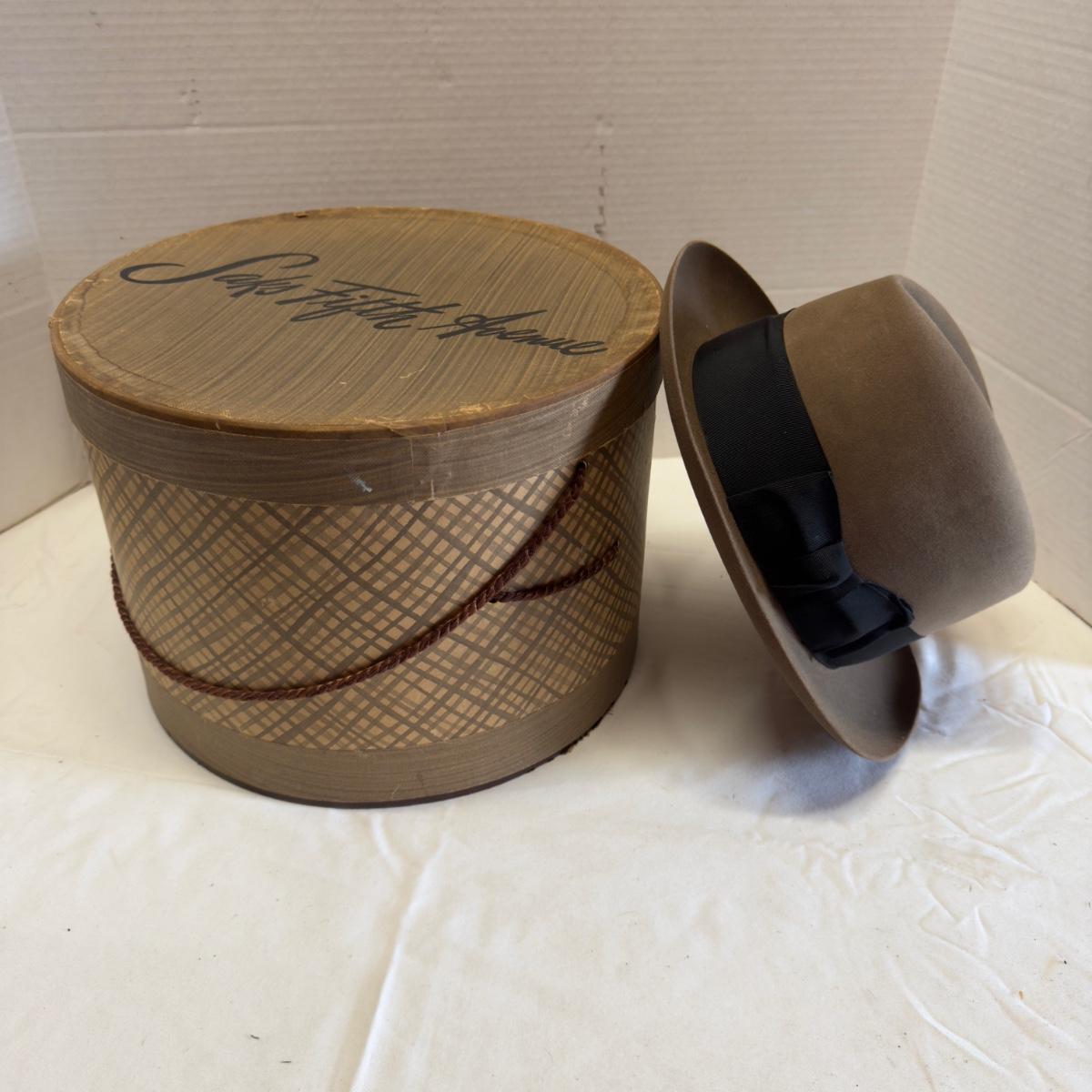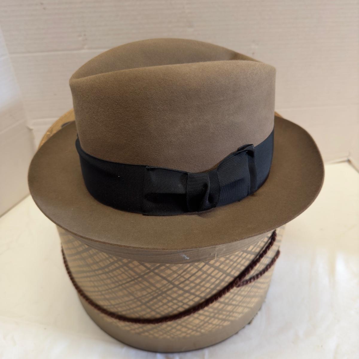 U1241 Vintage Brooks Brothers Fedora Hat with Ribbon and Hat Box