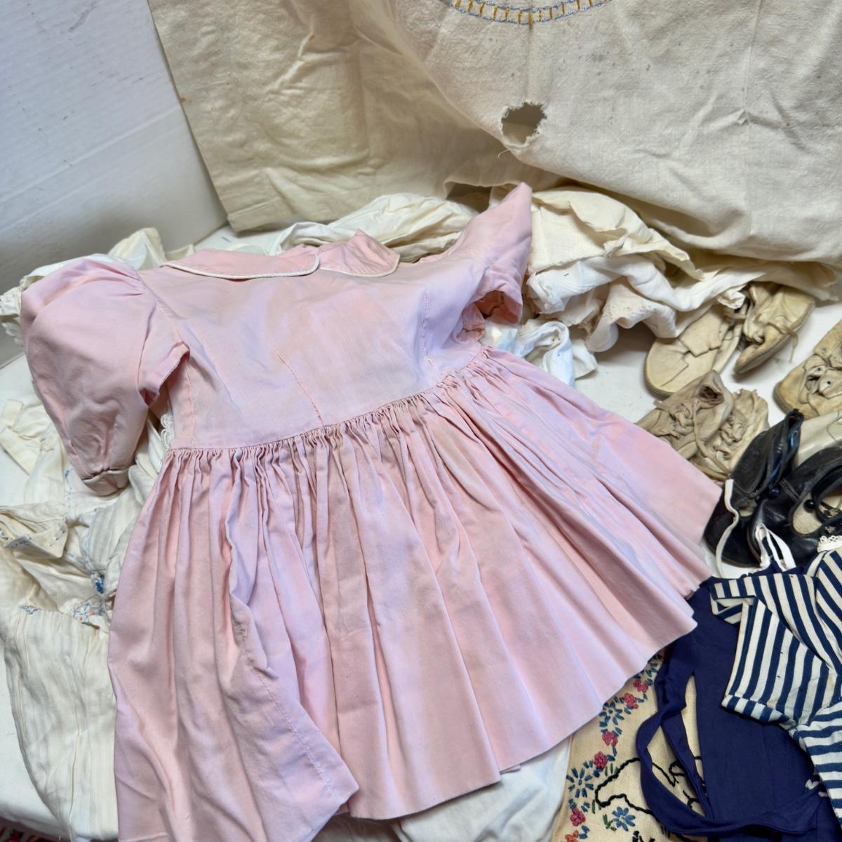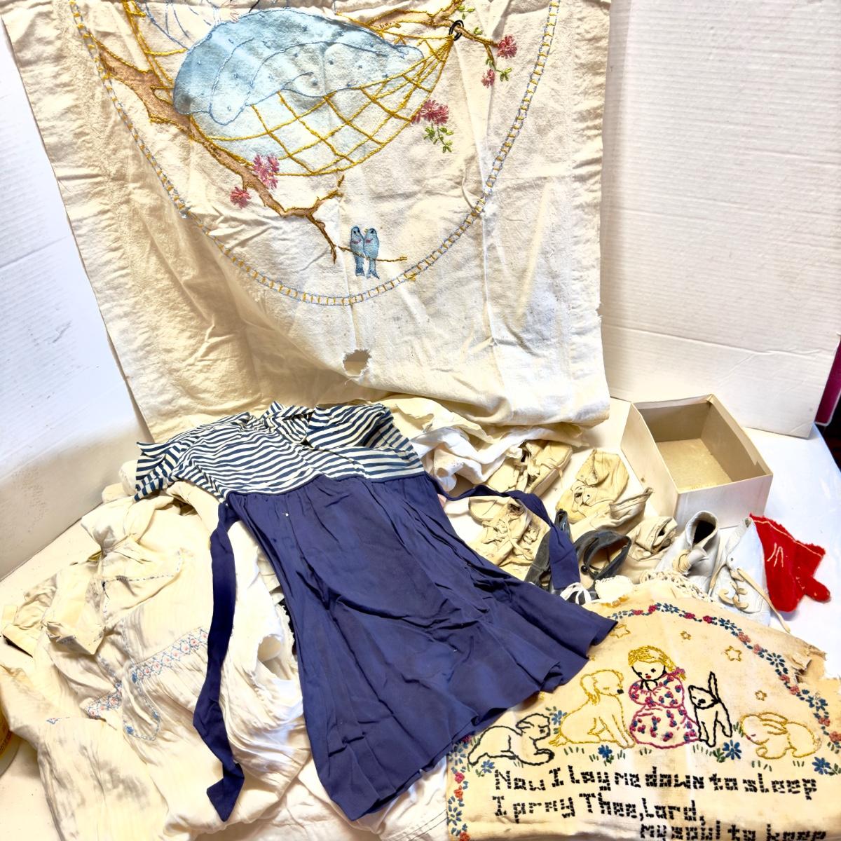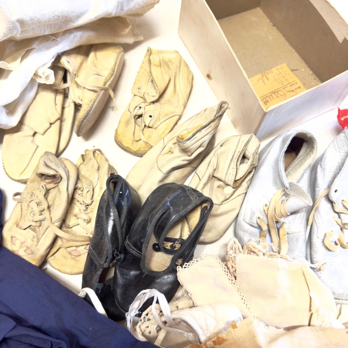 U1250 Antique Baby Clothing Lot with Baby Shoes and Blanket
