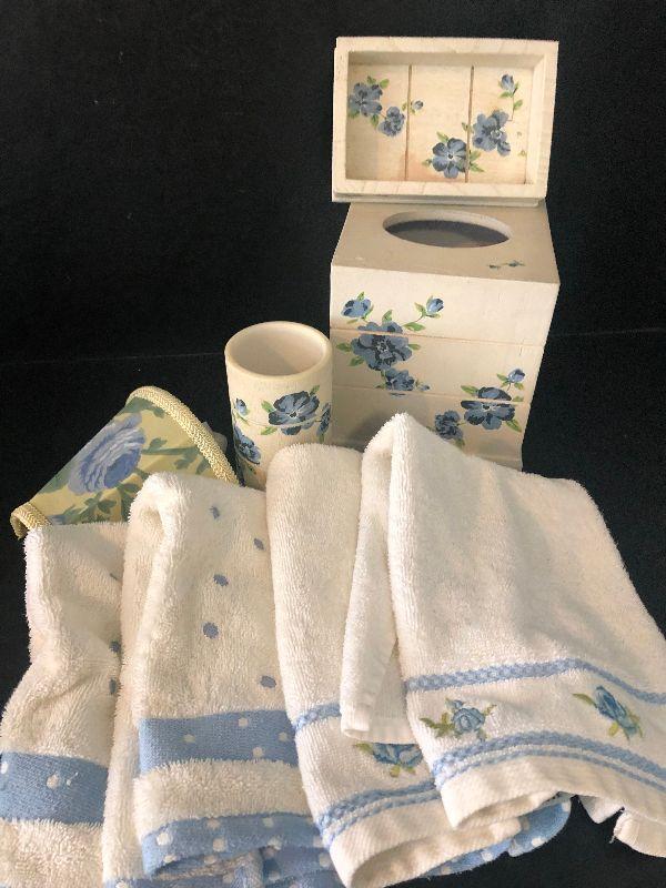 Lovely lot for bathroom. Please see pictures for contents of the lot, condition of the lot, and any measurements of the item. Thank you for looking and happy bidding!