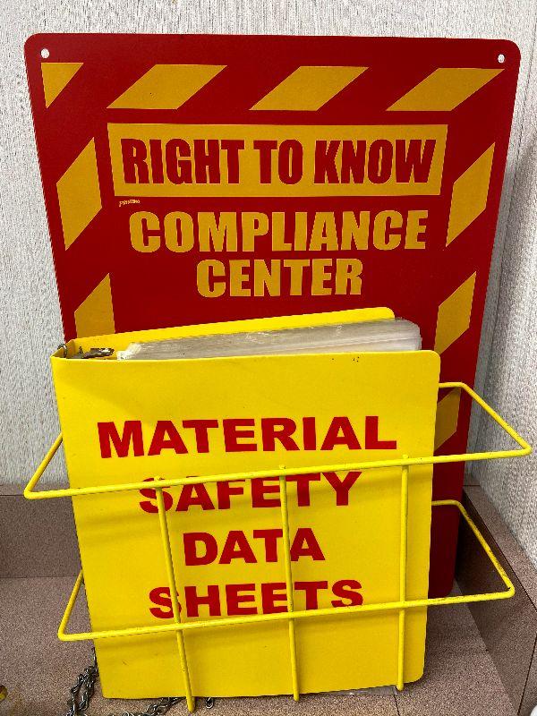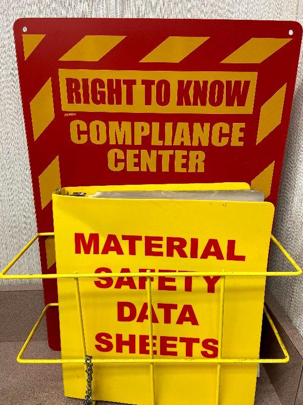 Pharmacy Marerial Safety Data Sheets with a right to know compliance center wall rack.