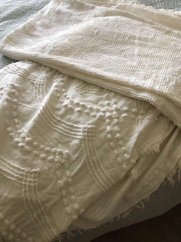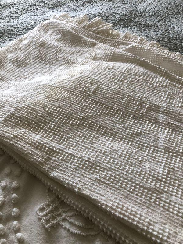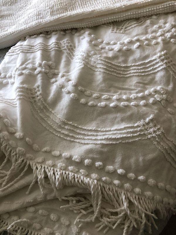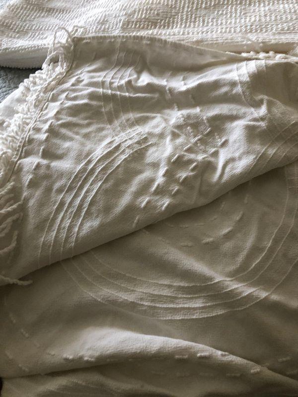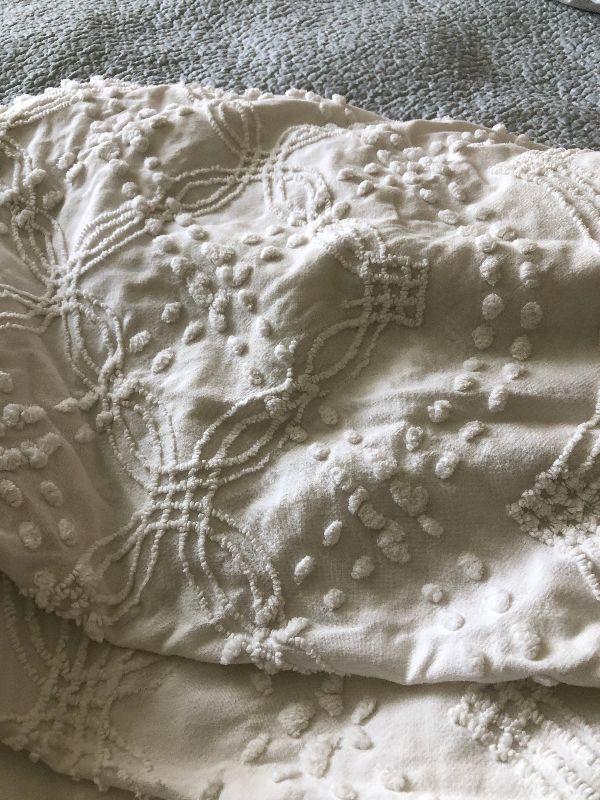 Nice lot of vintage linens, chenille design. These do show some age. Please see pictures for contents of the lot, condition of the lot, and any measurements of the item. Thank you for looking and happy bidding!