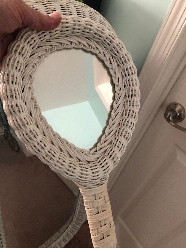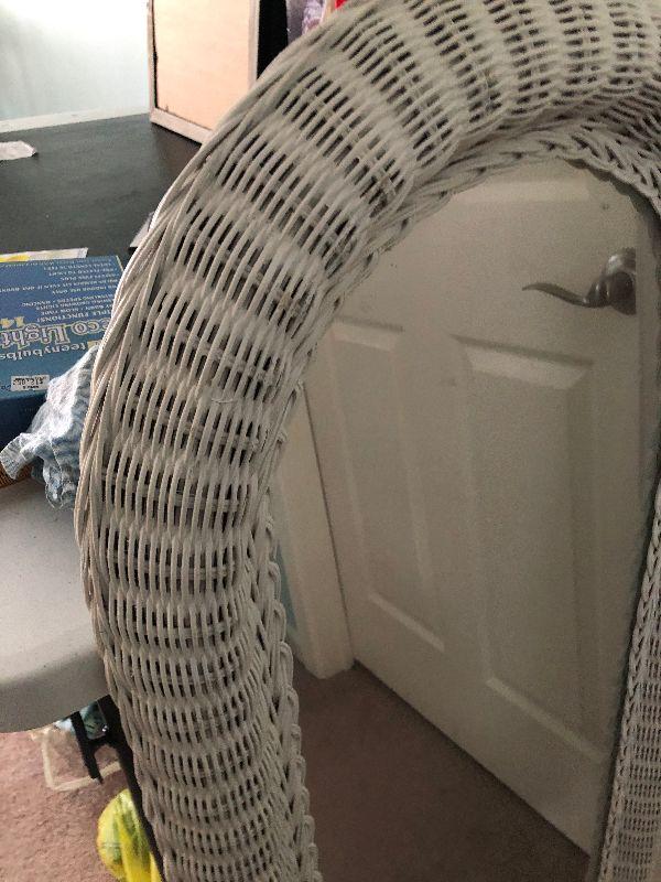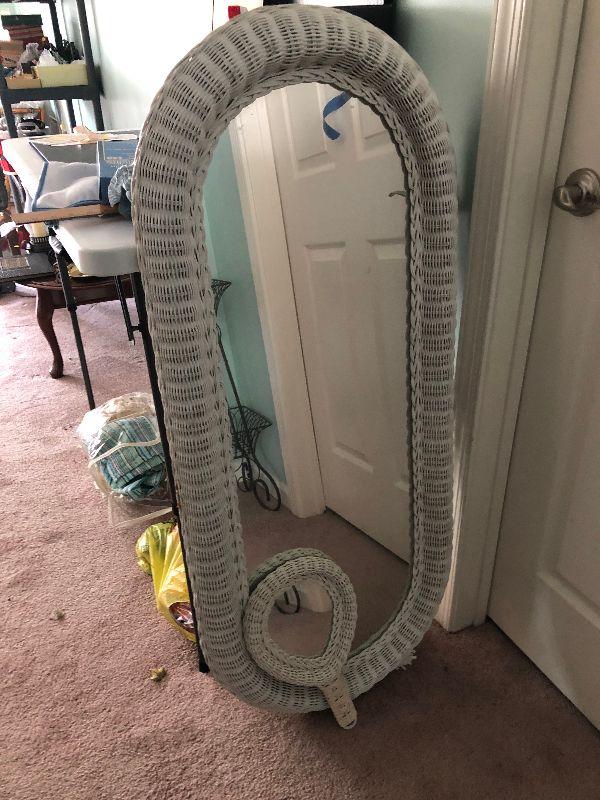 Wicker Wall Mirror! Please see pictures for contents of the lot, condition of the lot, and any measurements of the item. Thank you for looking and happy bidding!