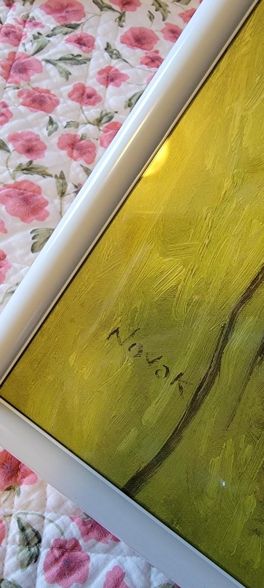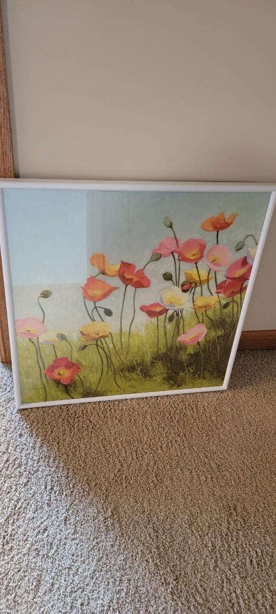 U-17 Poppy wall art by Novak in white metal frame. 25" x 25" frame