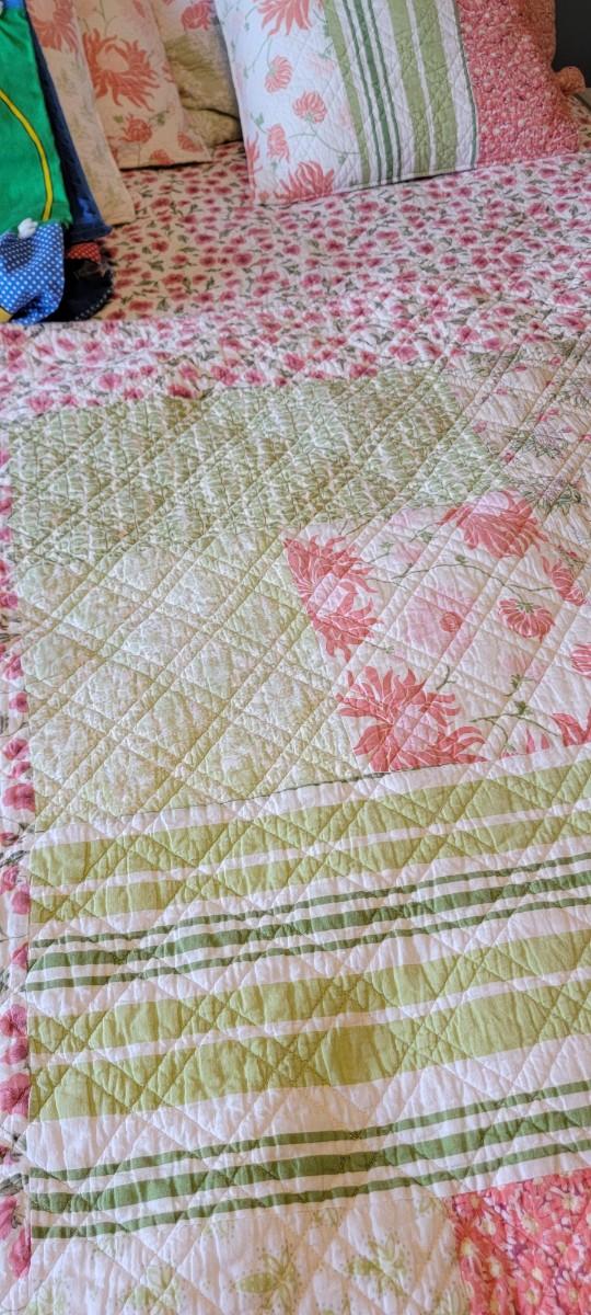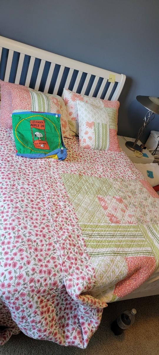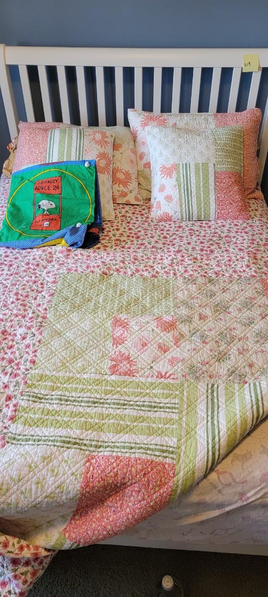U-19 Floral reversible comforter full size with matching shams, flannel dog pattern sheets full size with two pillows, mattress pad, Snoopy blanket