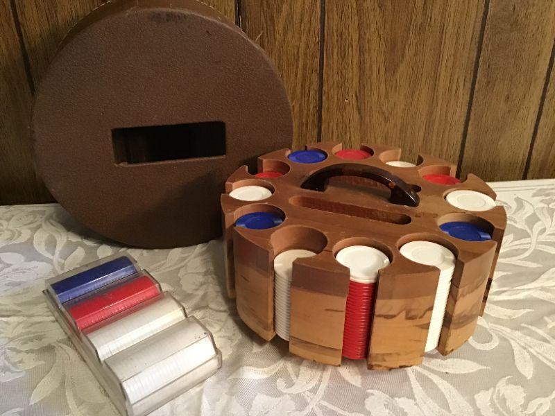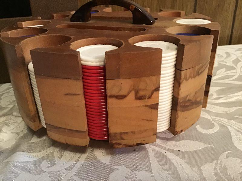 U#232 - Vintage wood poker set with travel cover