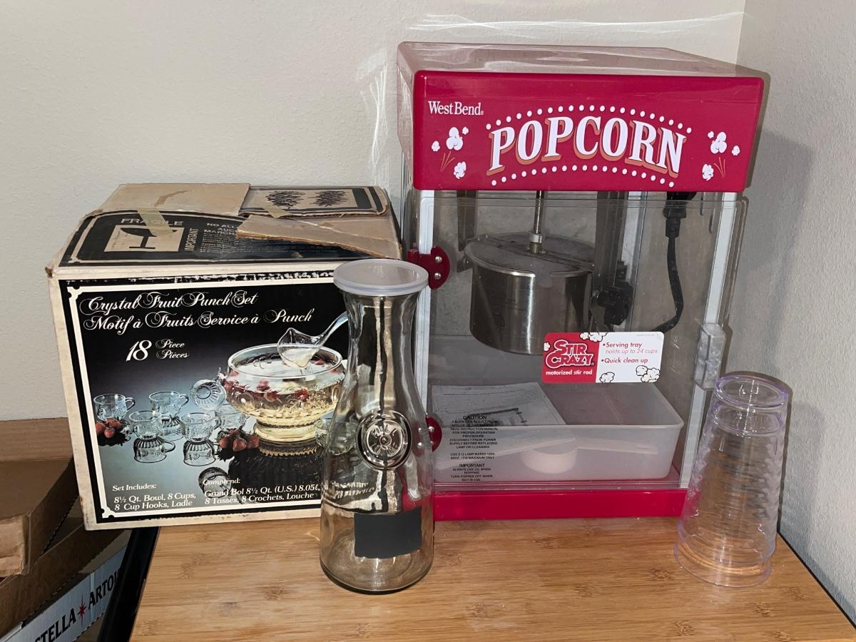 U24-Popcorn maker, punch bowl set, and extras