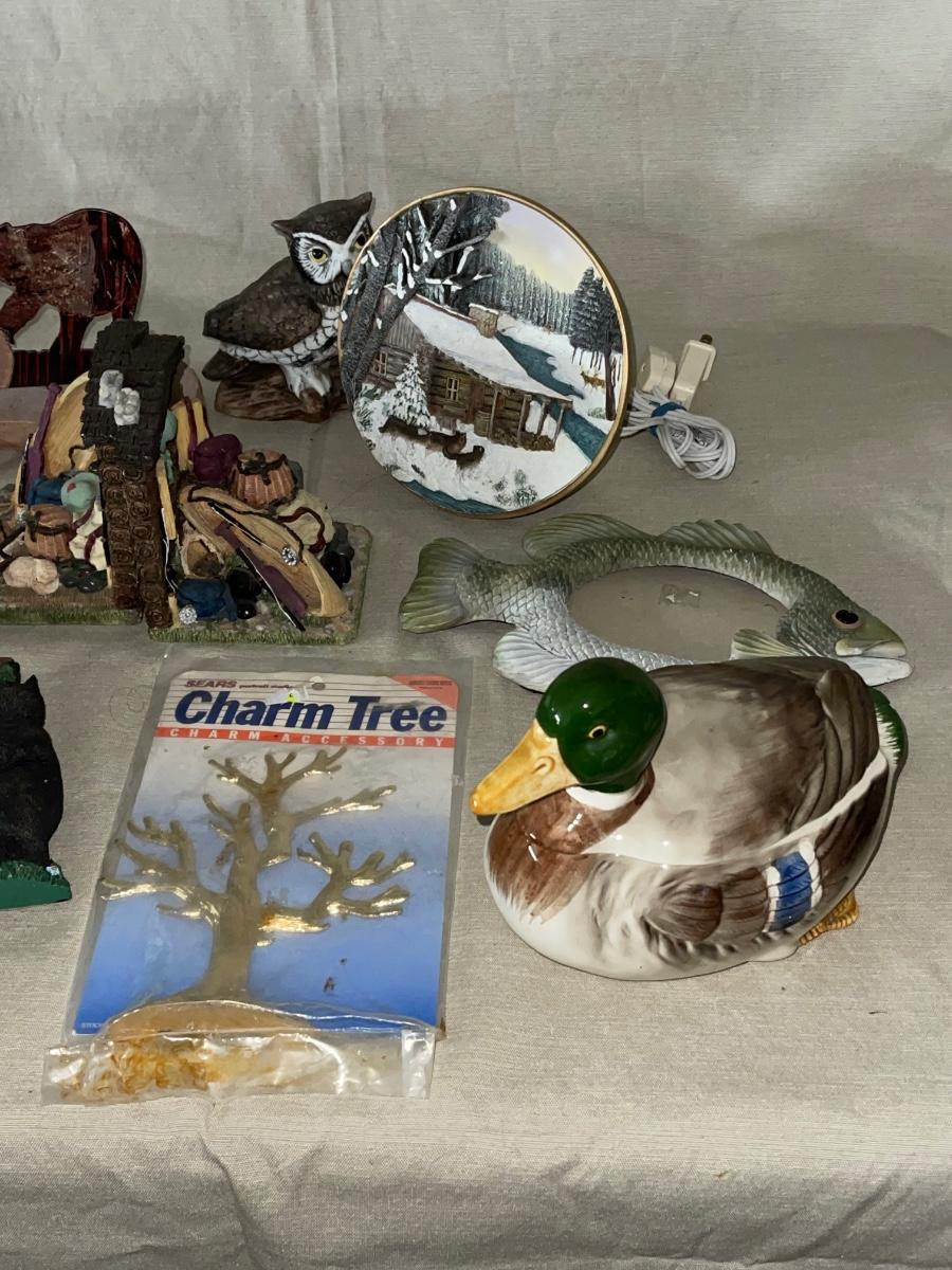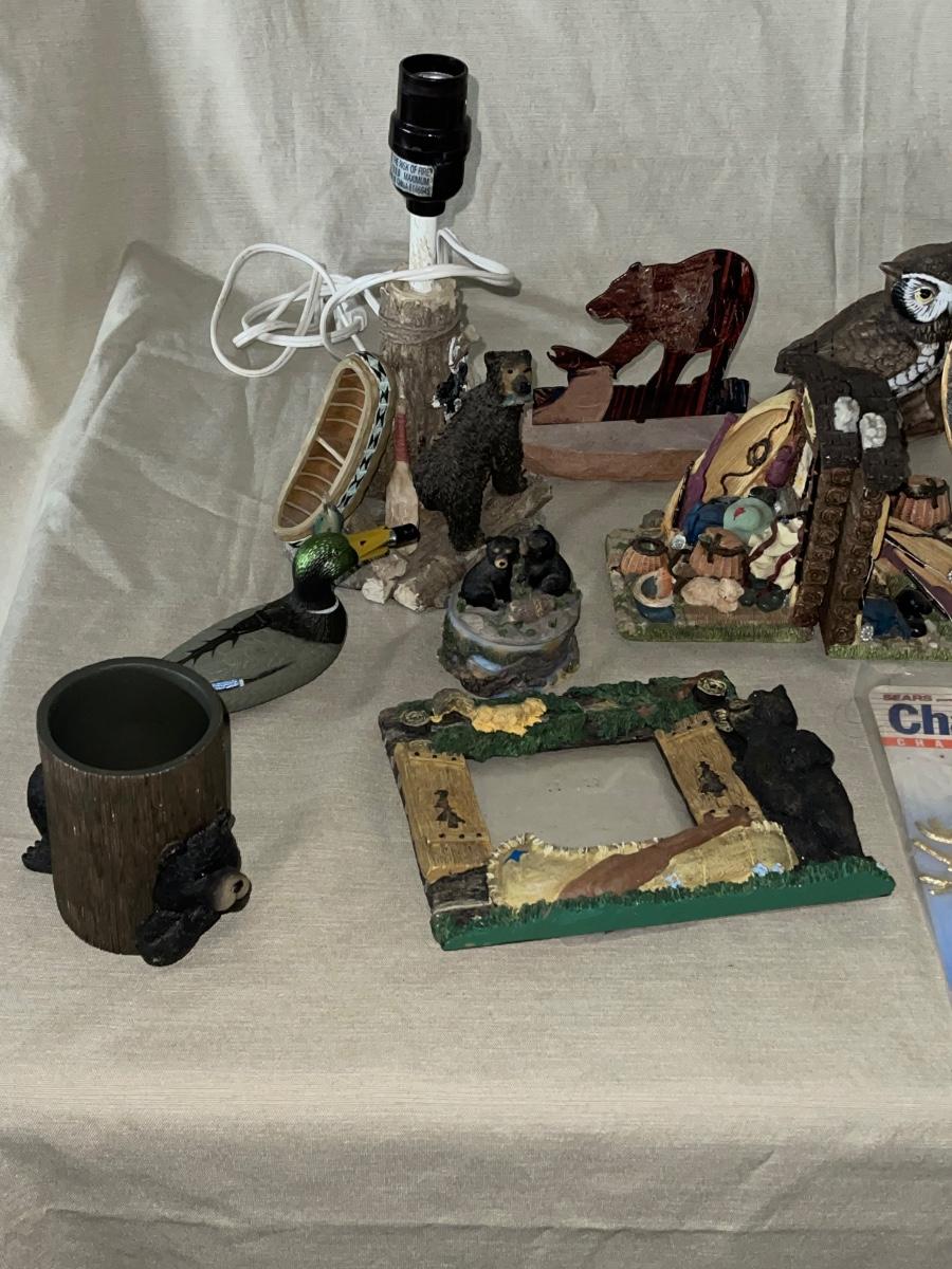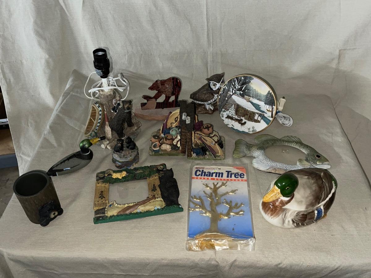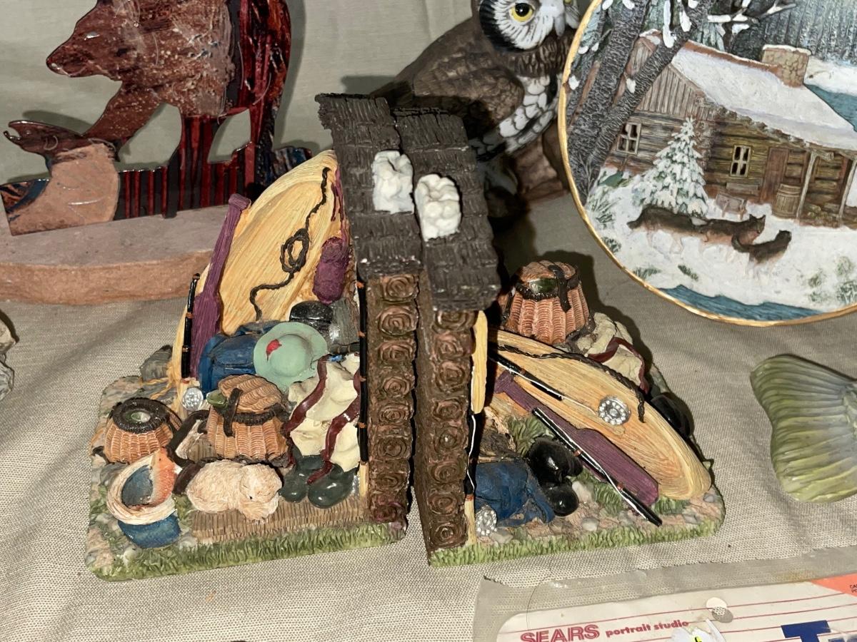 Two lamps, frame, Bookends etc.