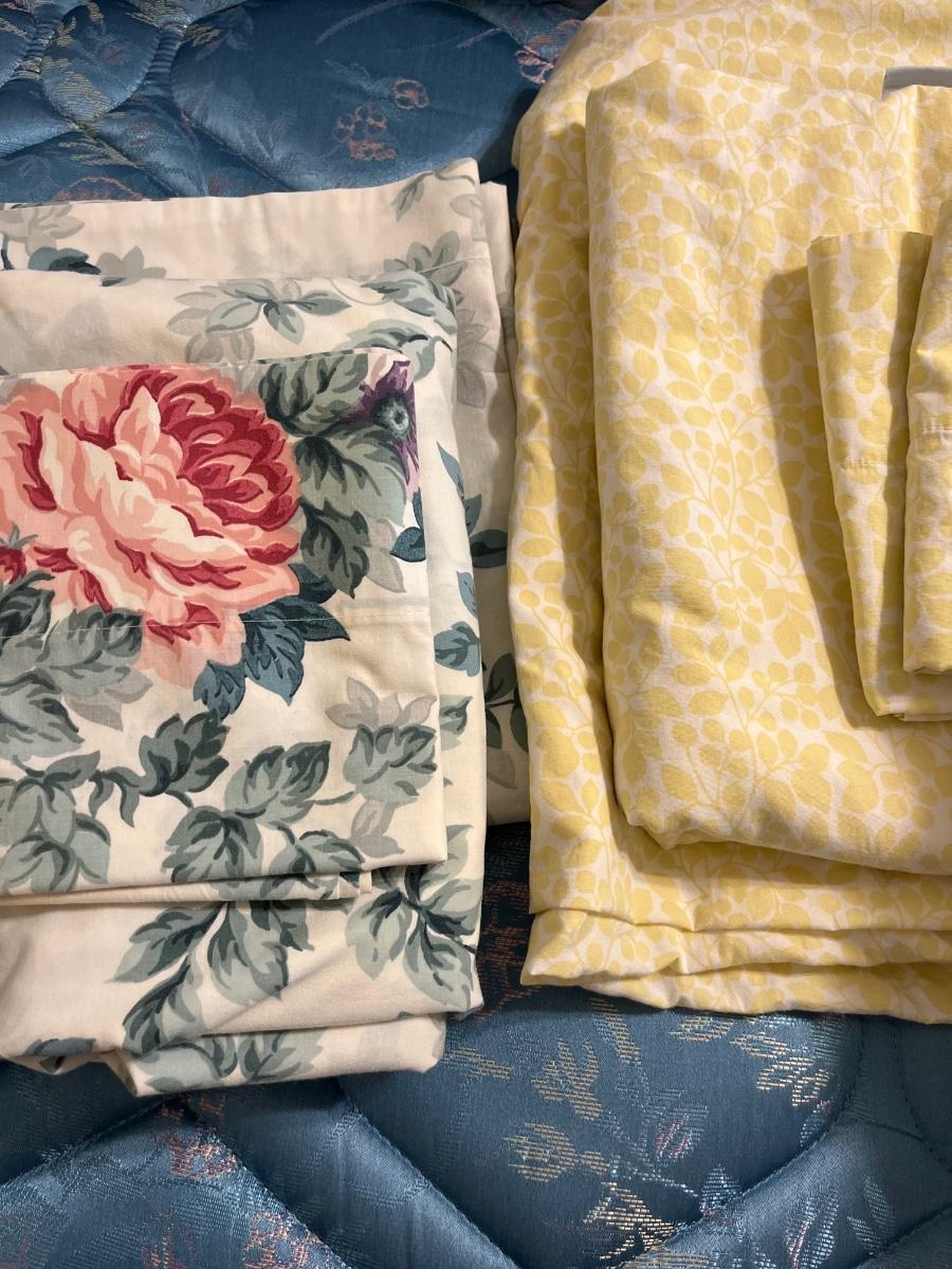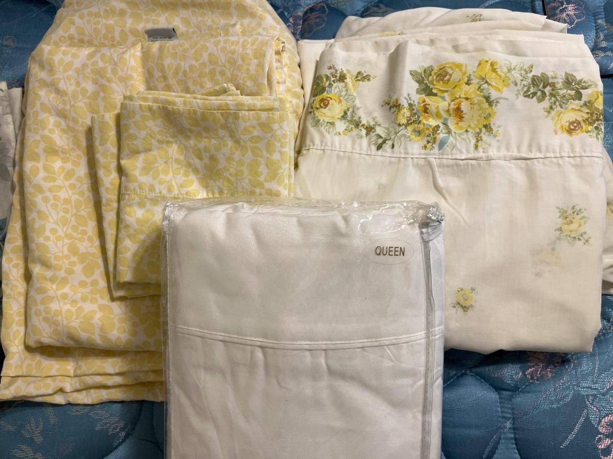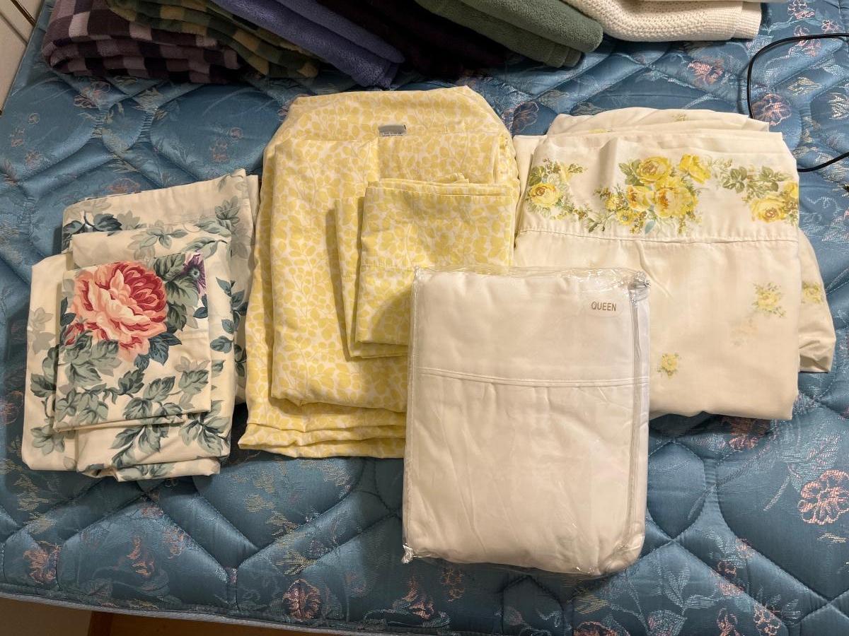 U26- Queen sheet sets (3) & floral flat/fitted sheet