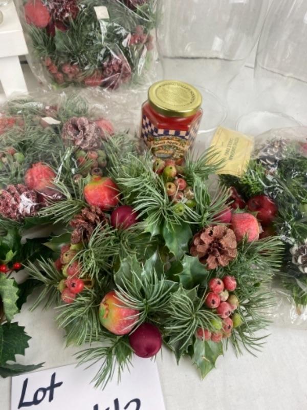 Christmas hurricane glove Decor with variety of rings, Yankee candles, home interior candles
