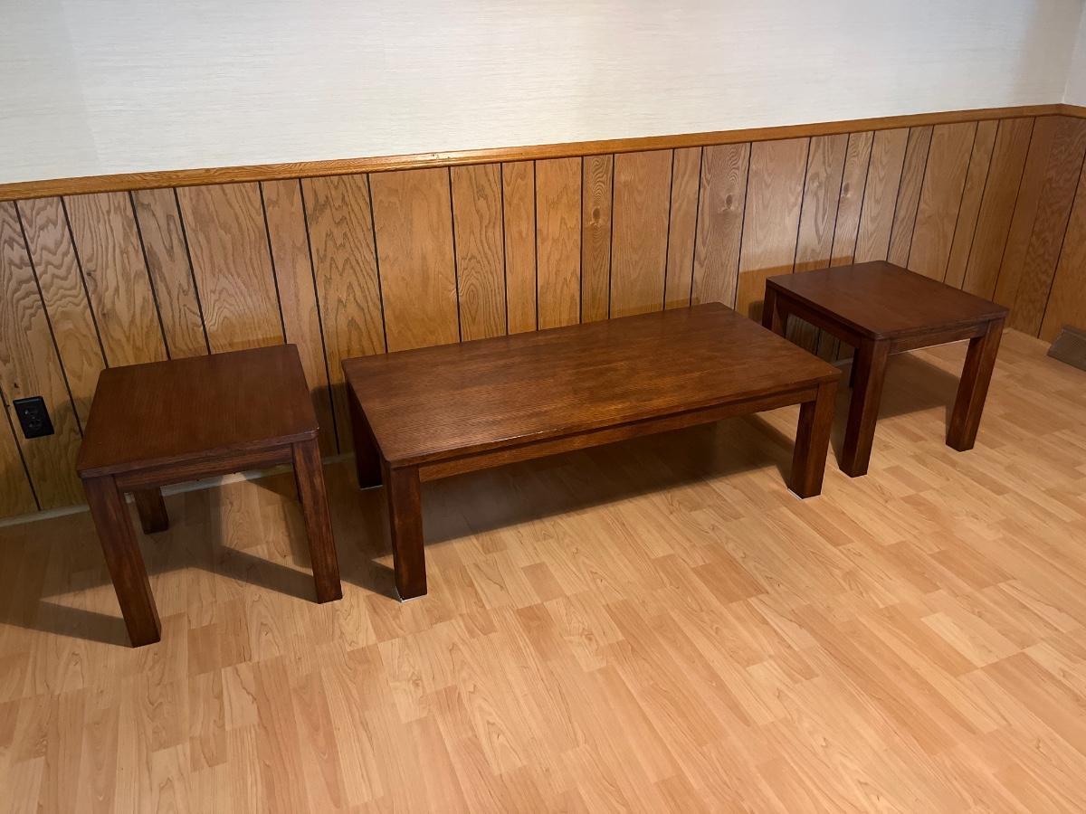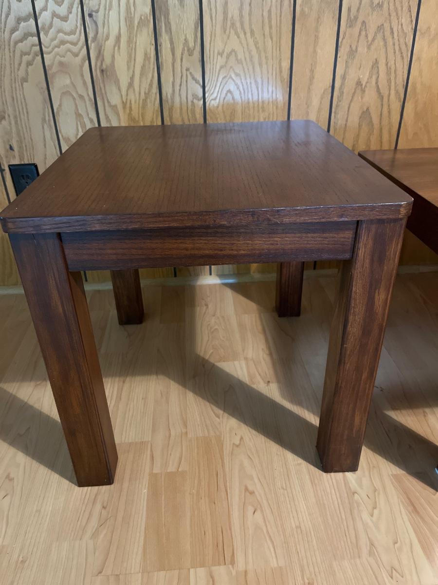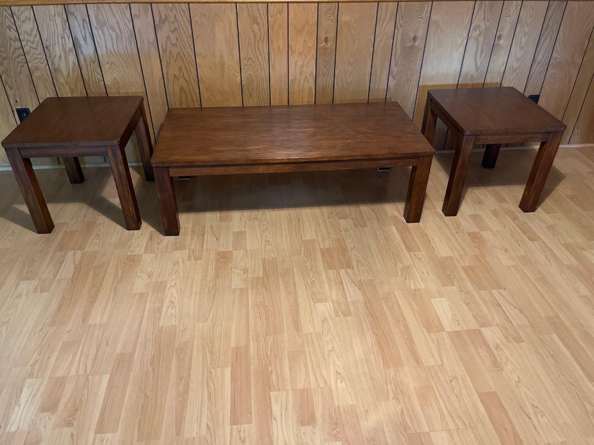 See pics. 18.5” x 21” x 18.5”h side table, coffee table 48” x 24” x 15.5” h