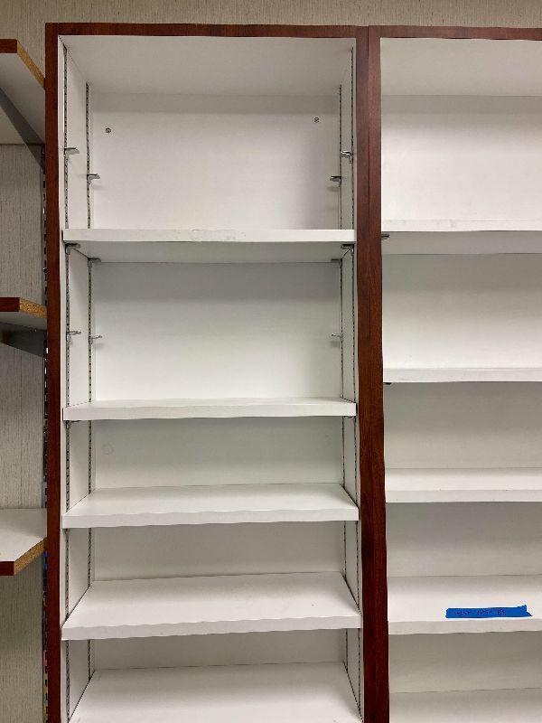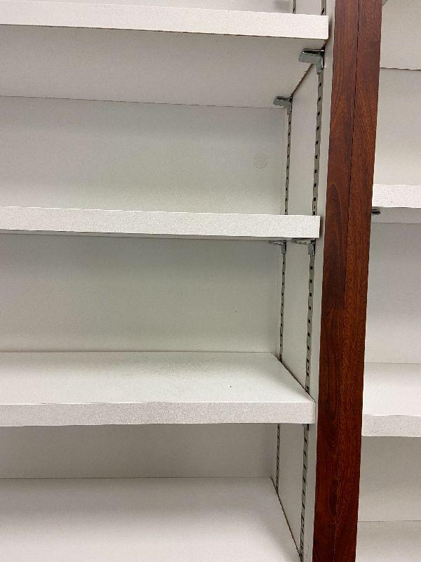 11 adjustable shelves, low profile 8” deep shelves, and 20 inches wide