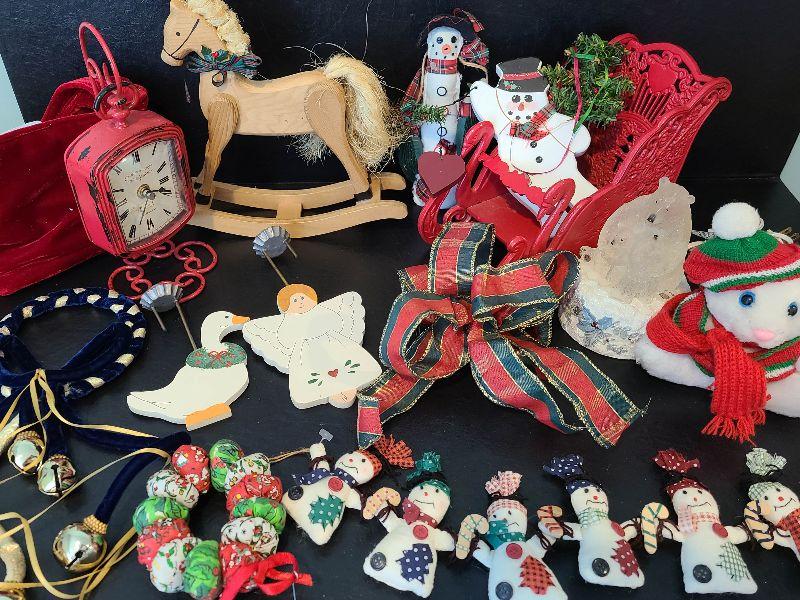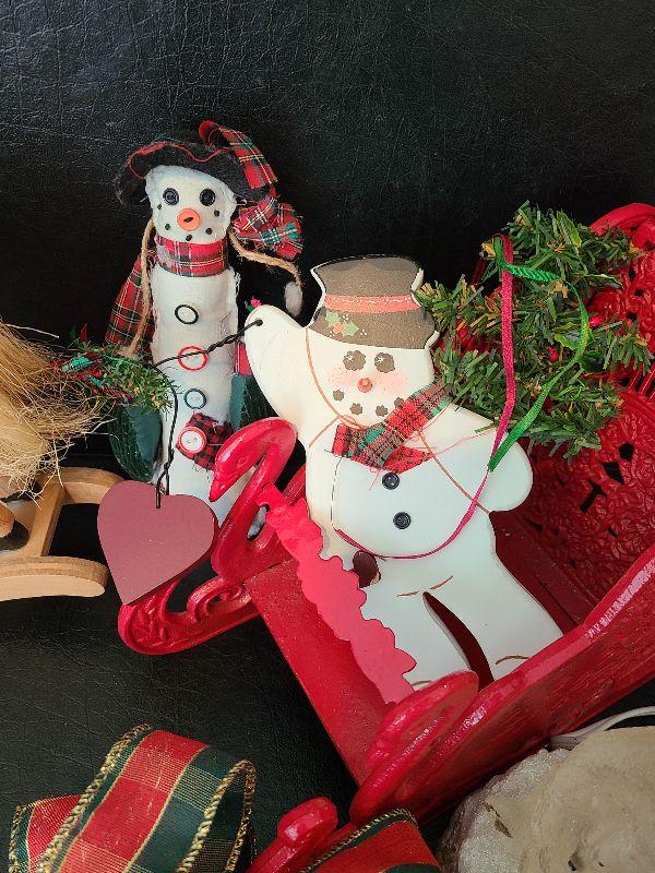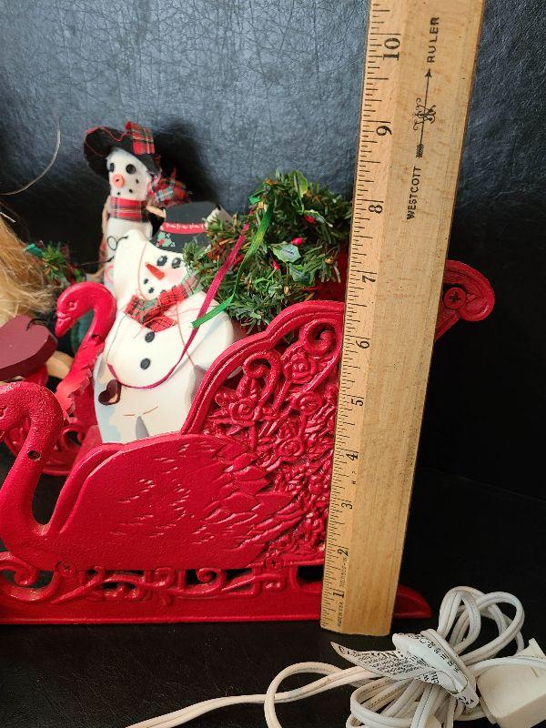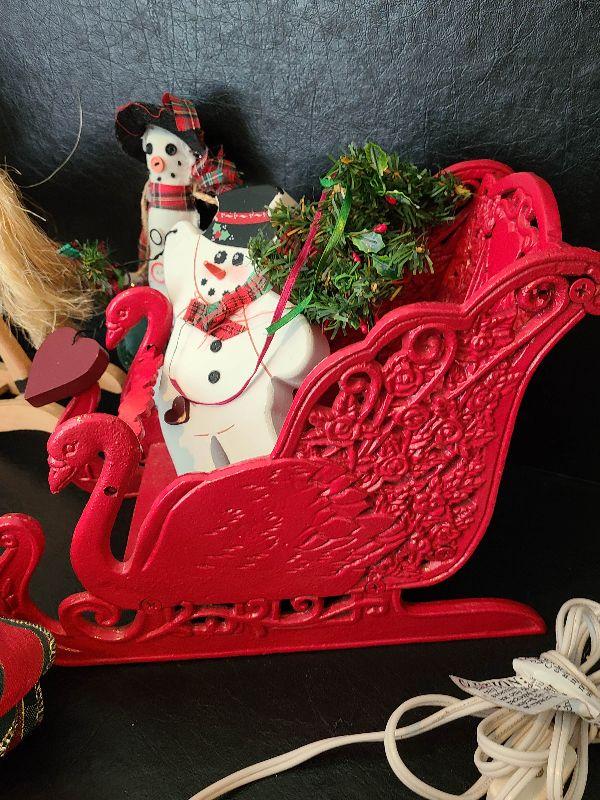 The red sleigh in this picture is cast iron and very heavy. Perfect for a table display. All of these items are great decorations! Please see pictures for contents of the lot, condition of the lot, and any measurements of the item. Thank you for looking and happy bidding!