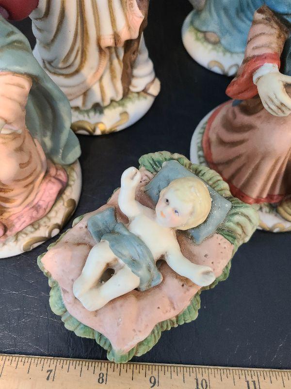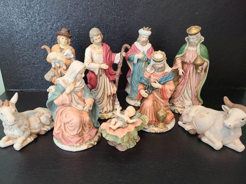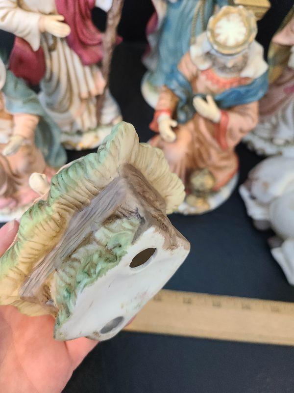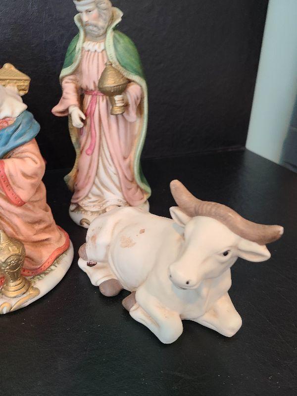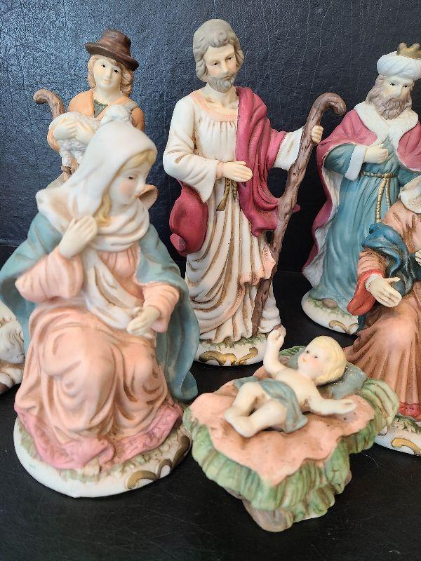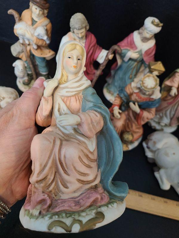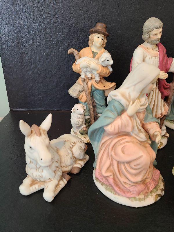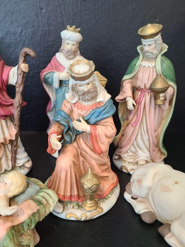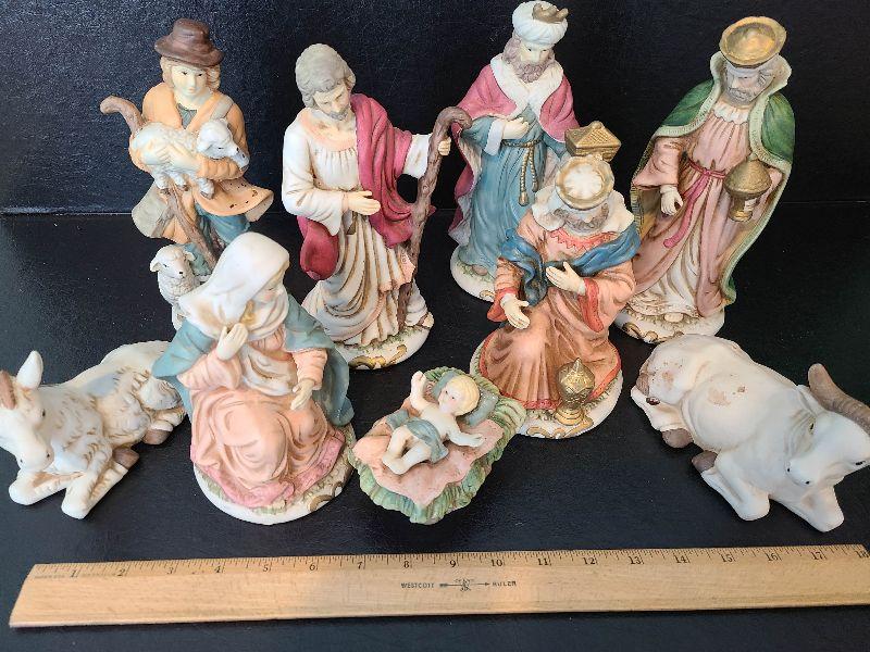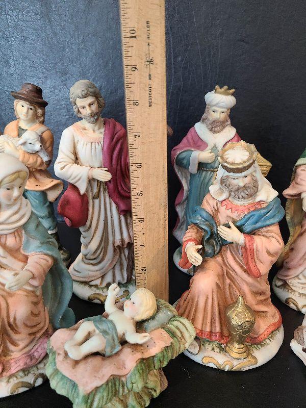 Nice nativity display. These are taller. Please see pictures for contents of the lot, condition of the lot, and any measurements of the item. Thank you for looking and happy bidding!