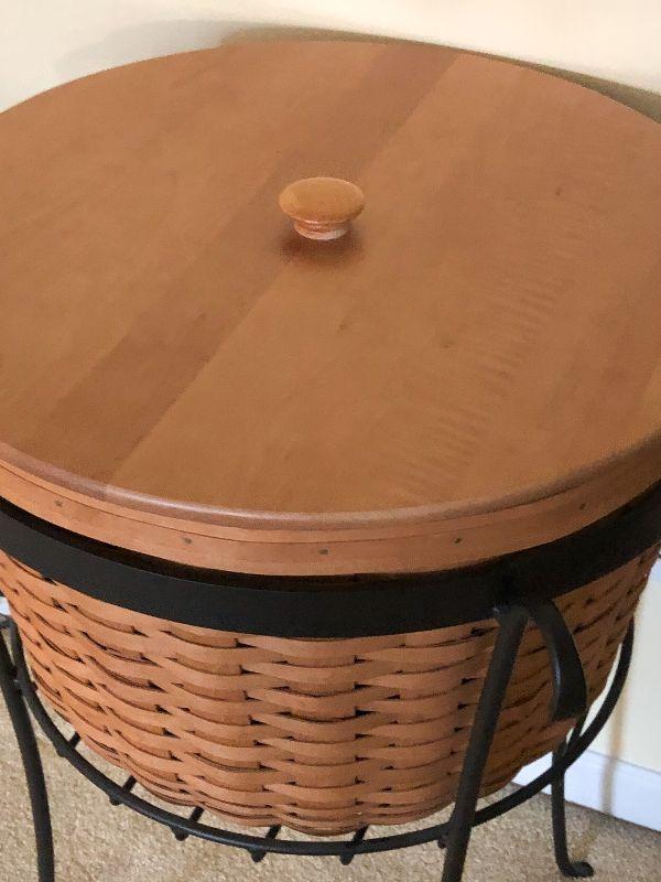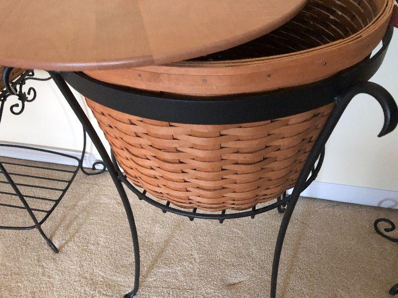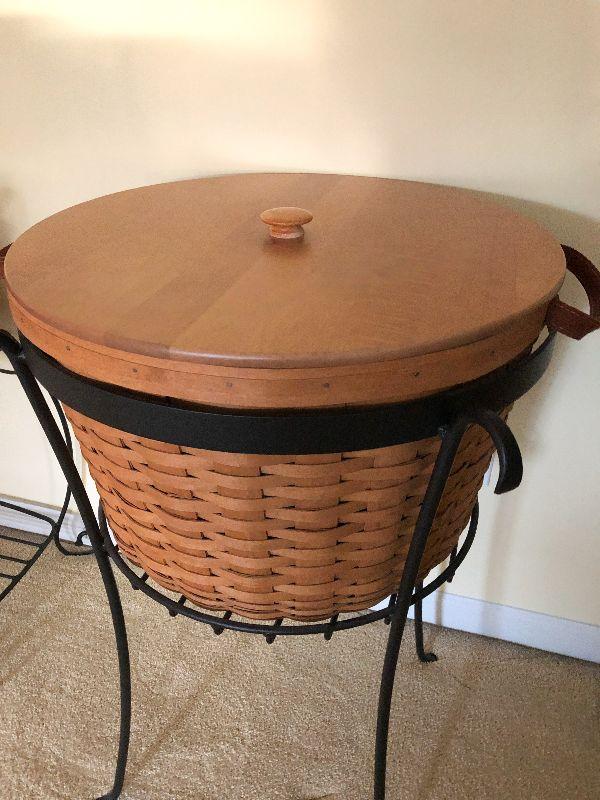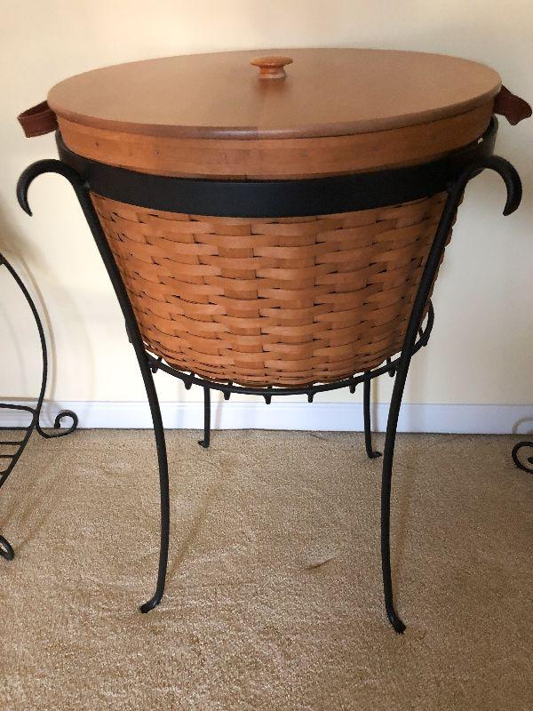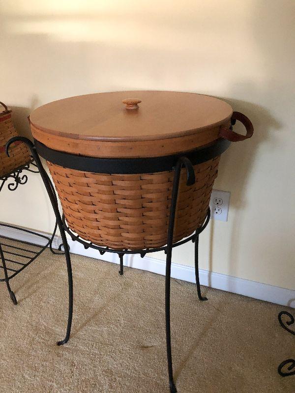 Wrought Iron Stand and Longaberge Basket. Please refer to photos for size and condition. Have fun and happy bidding.