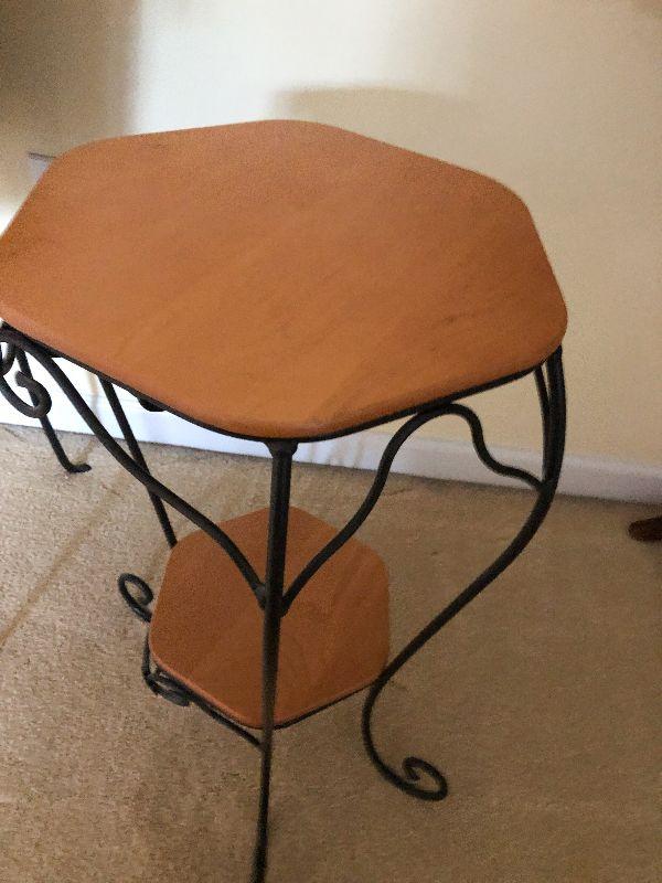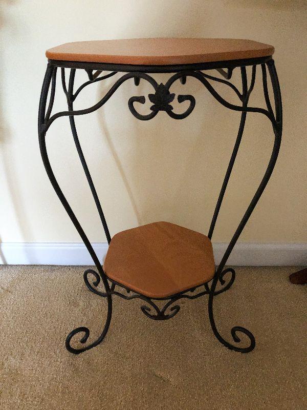 Wrought Iron Plant Stand by Longaberger. Please refer to photos for size and condition. Have fun and happy bidding.