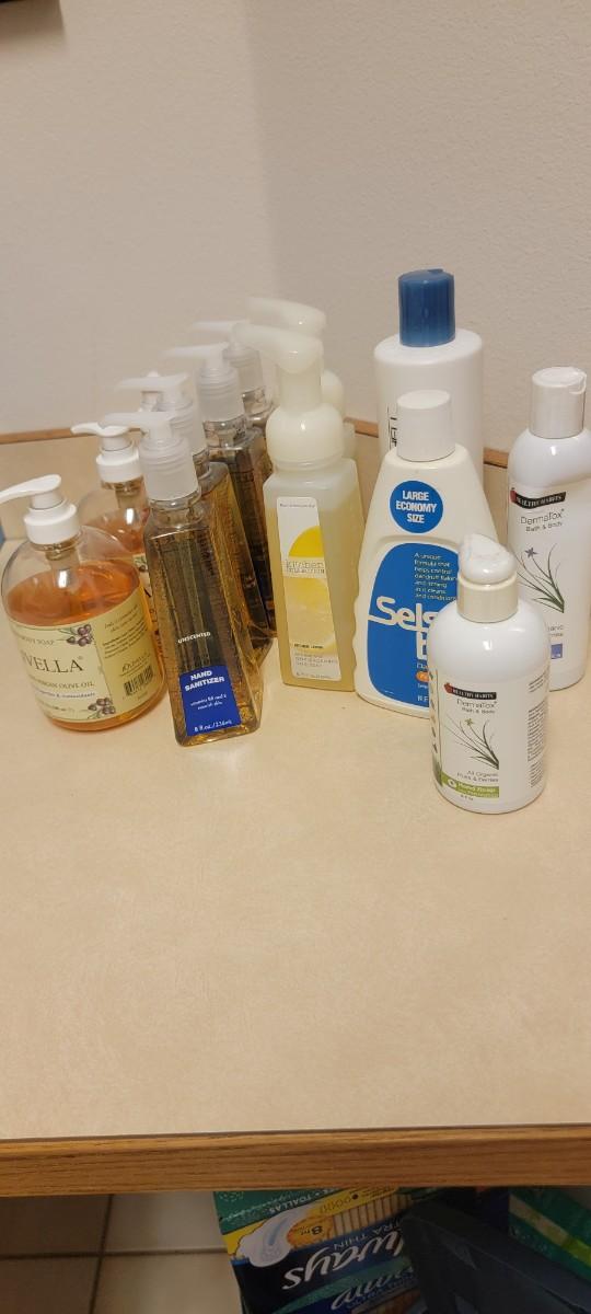 Olivella Face and Body soap, hand sanitizer, shampoo and more