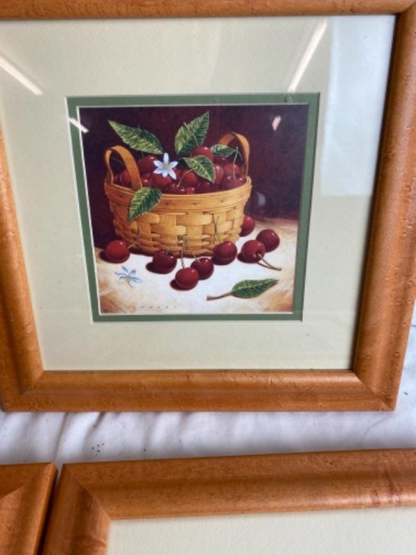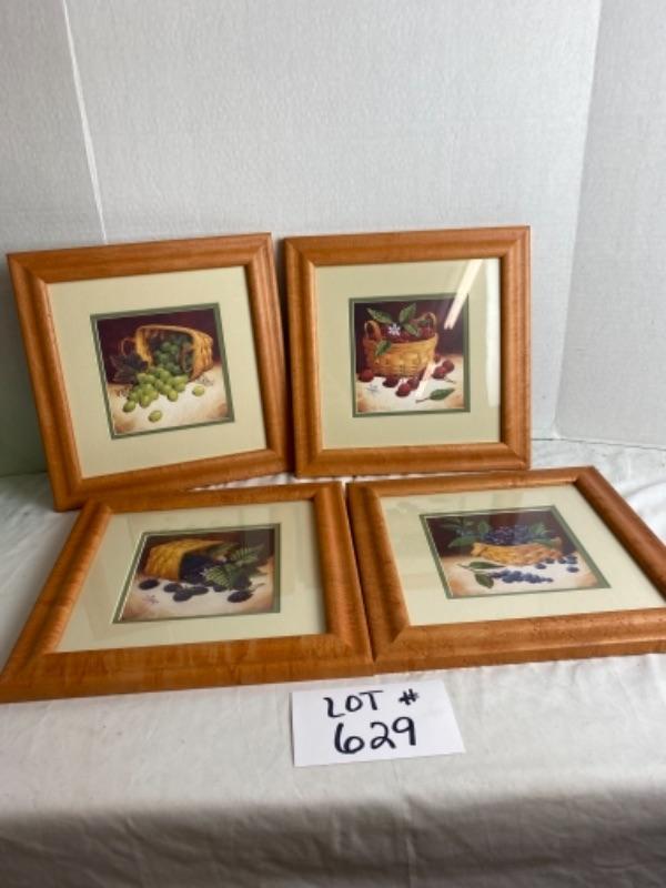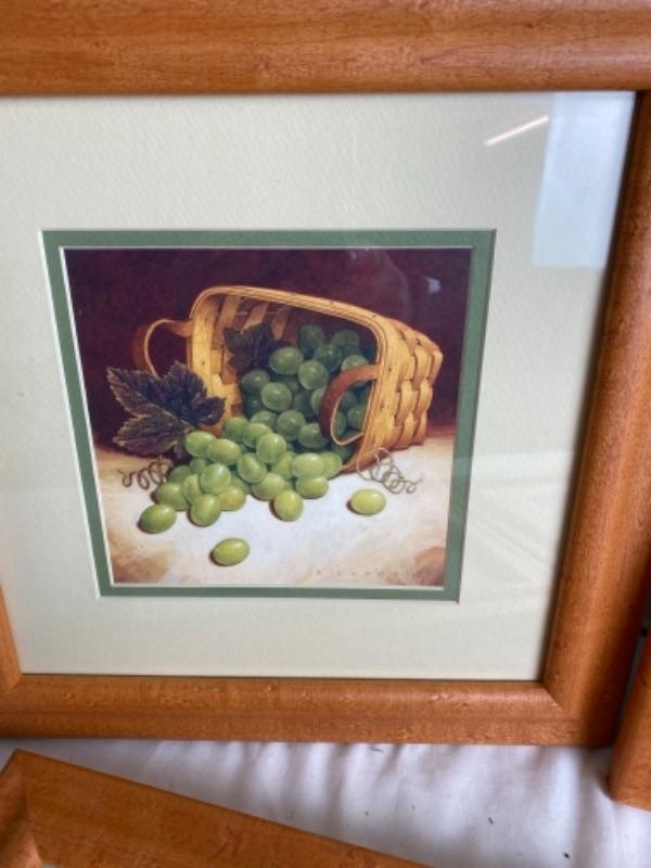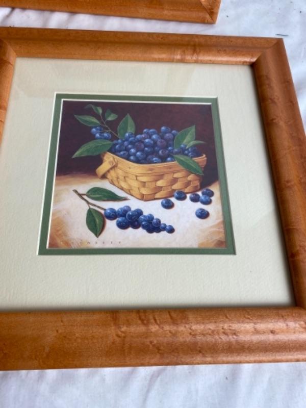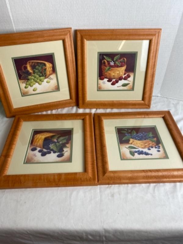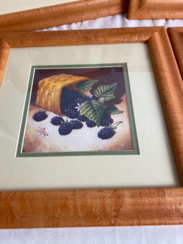 Set of four Longaberger fruit pictures Measuring 12 1/2 x 12 1/2” pictures and clean blueberries blackberries green grapes red cherries