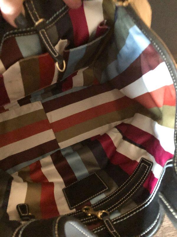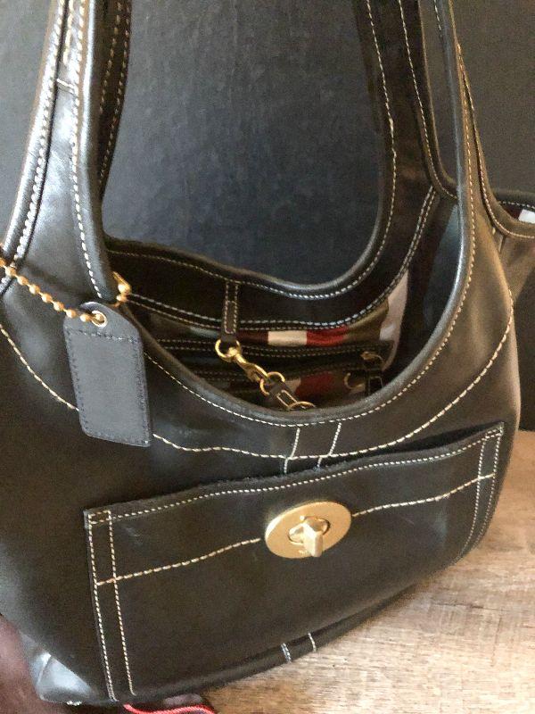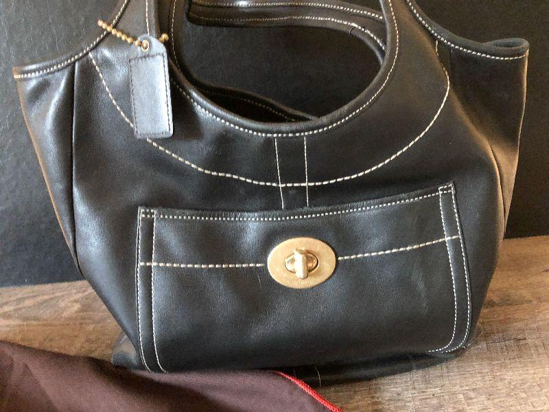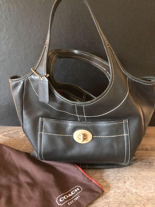 Coach Leather Handbag with Duster. Please refer to photos for size and condition. Have fun and happy bidding.
