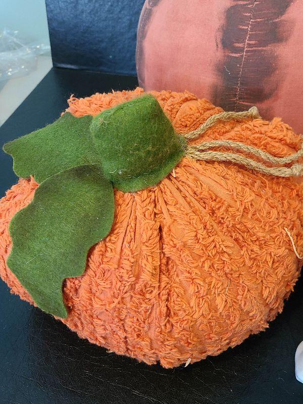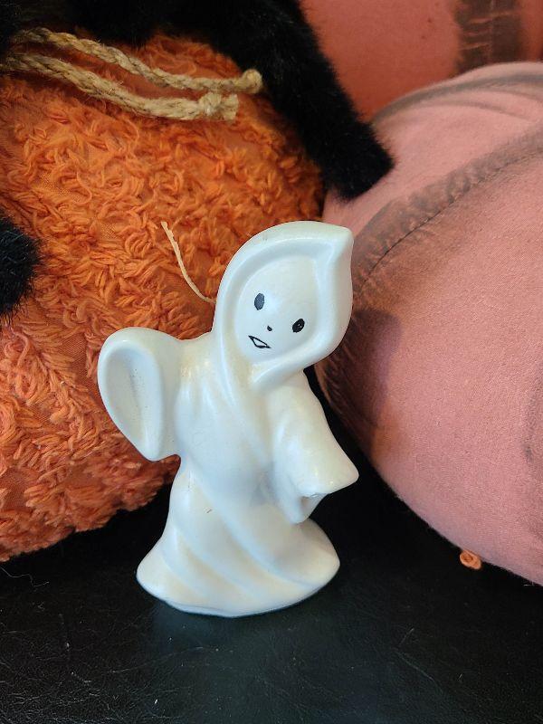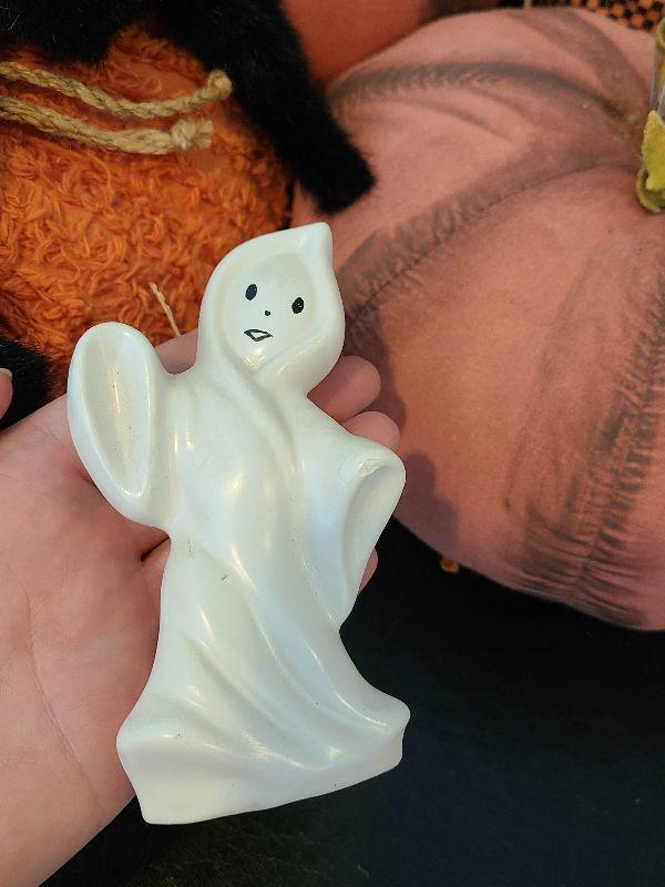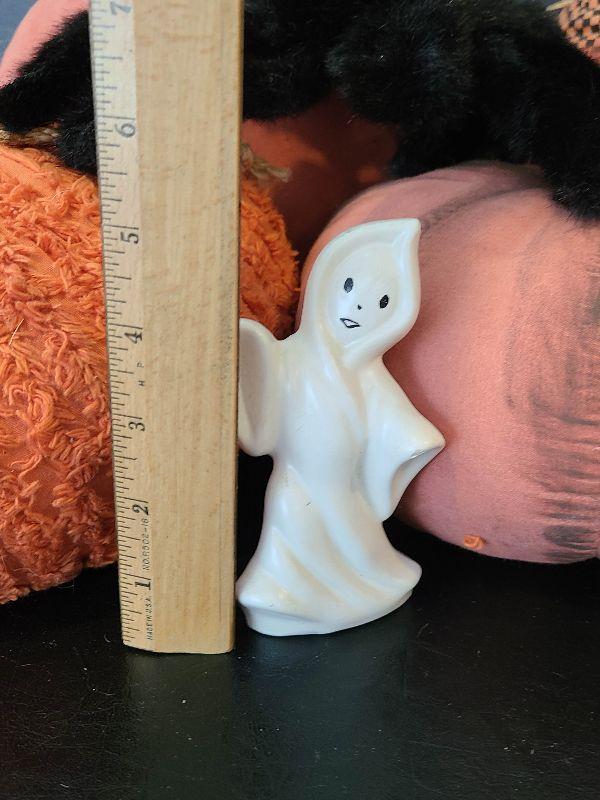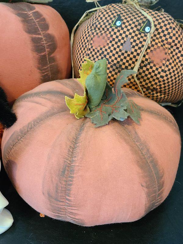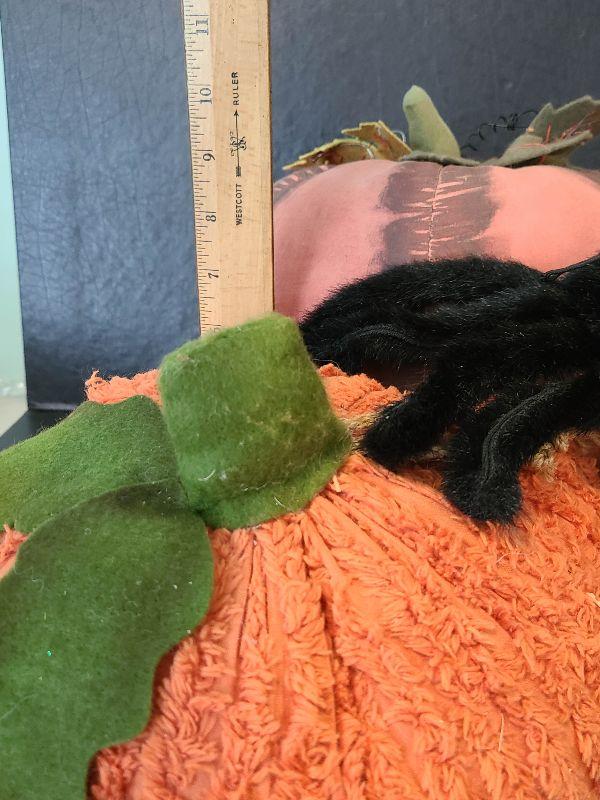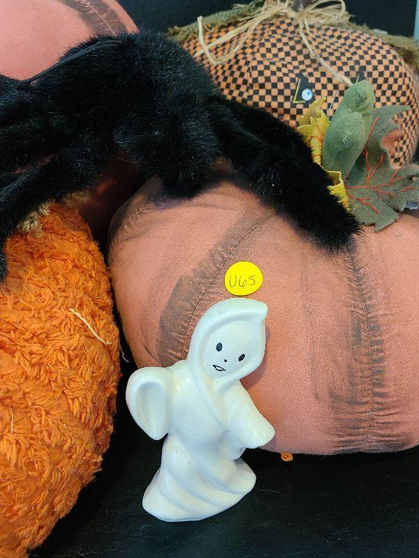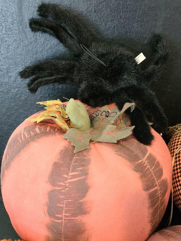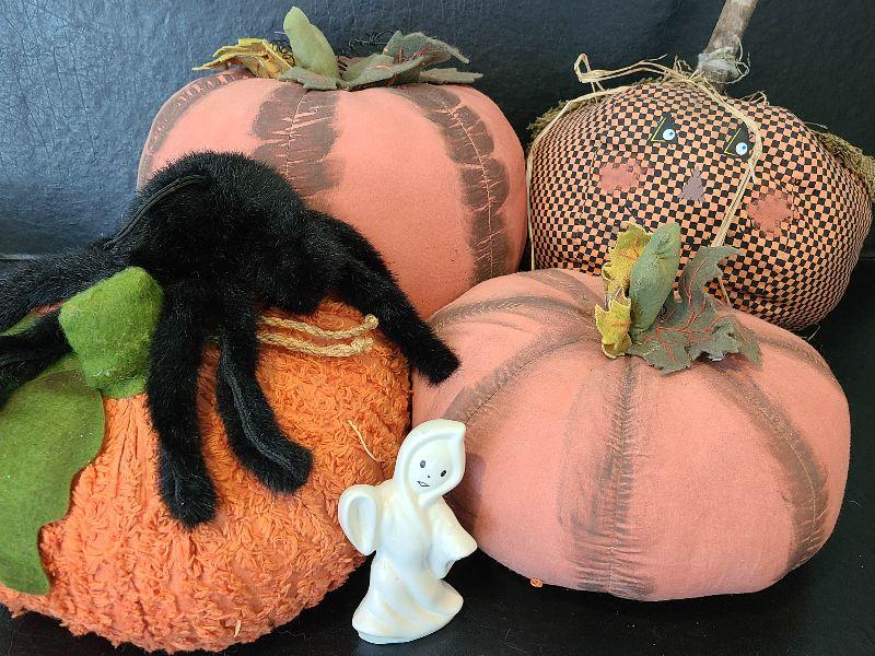 Fun lot of décor. These pumpkins are larger for display and come with a vintage ceramic ghost, and spider. Please see pictures for contents of the lot, condition of the lot, and any measurements of the item. Thank you for looking and happy bidding!