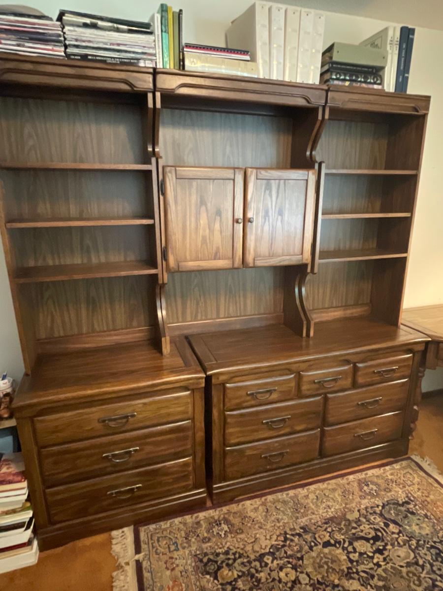 U8-Left & right pieces 30 inches wide, 18 inches deep, 30 inches high at the flat surface 78” tall with shelf on top