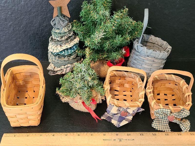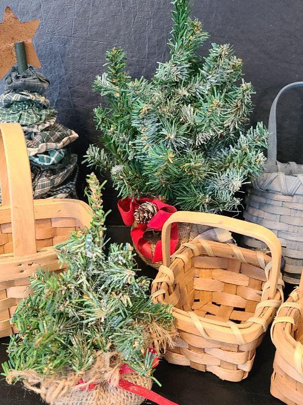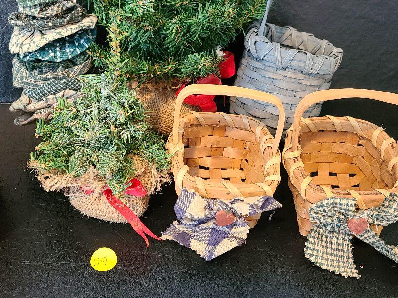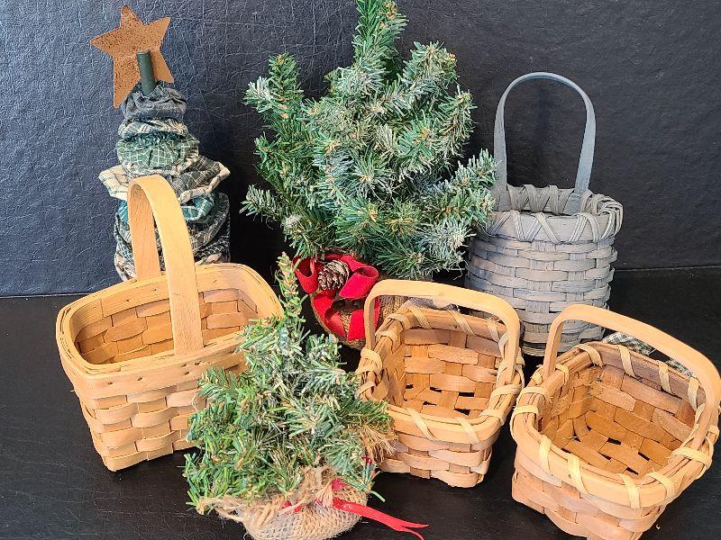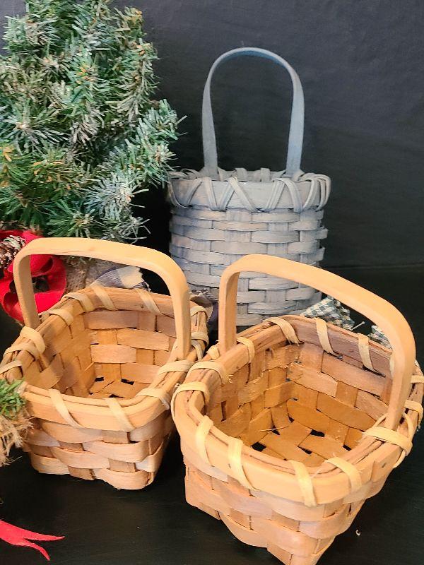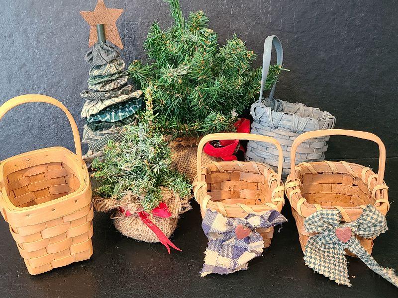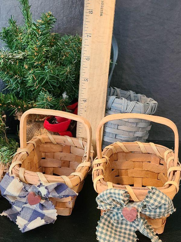 Cute small baskets perfect for everyday use or holiday décor and decorative tree lot. Please see pictures for contents of the lot, condition of the lot, and any measurements of the item. Thank you for looking and happy bidding!