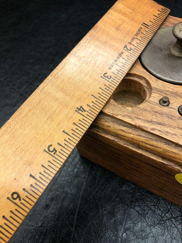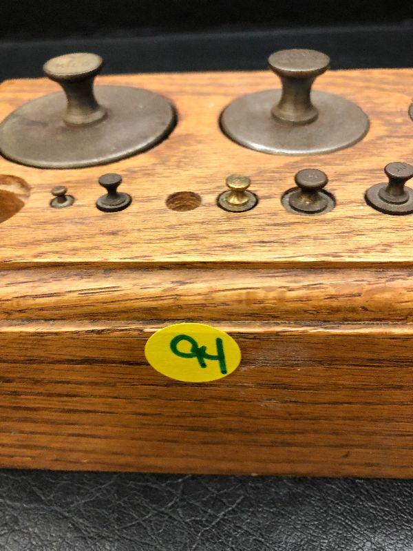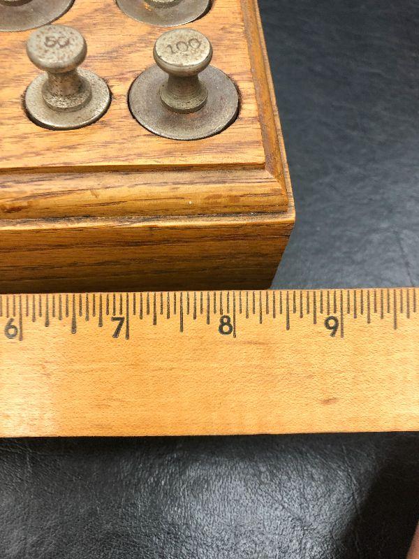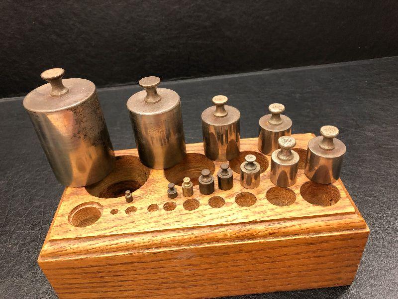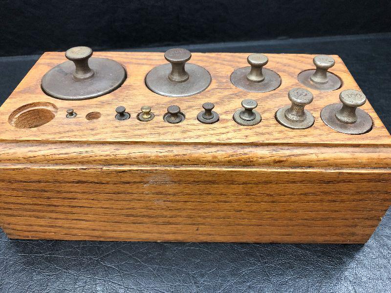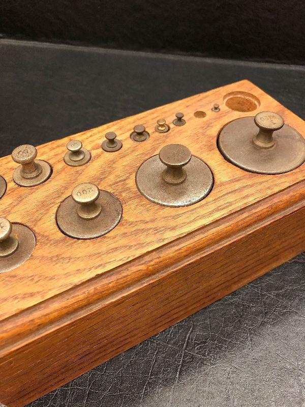 Vintage Brass weights in wood block
