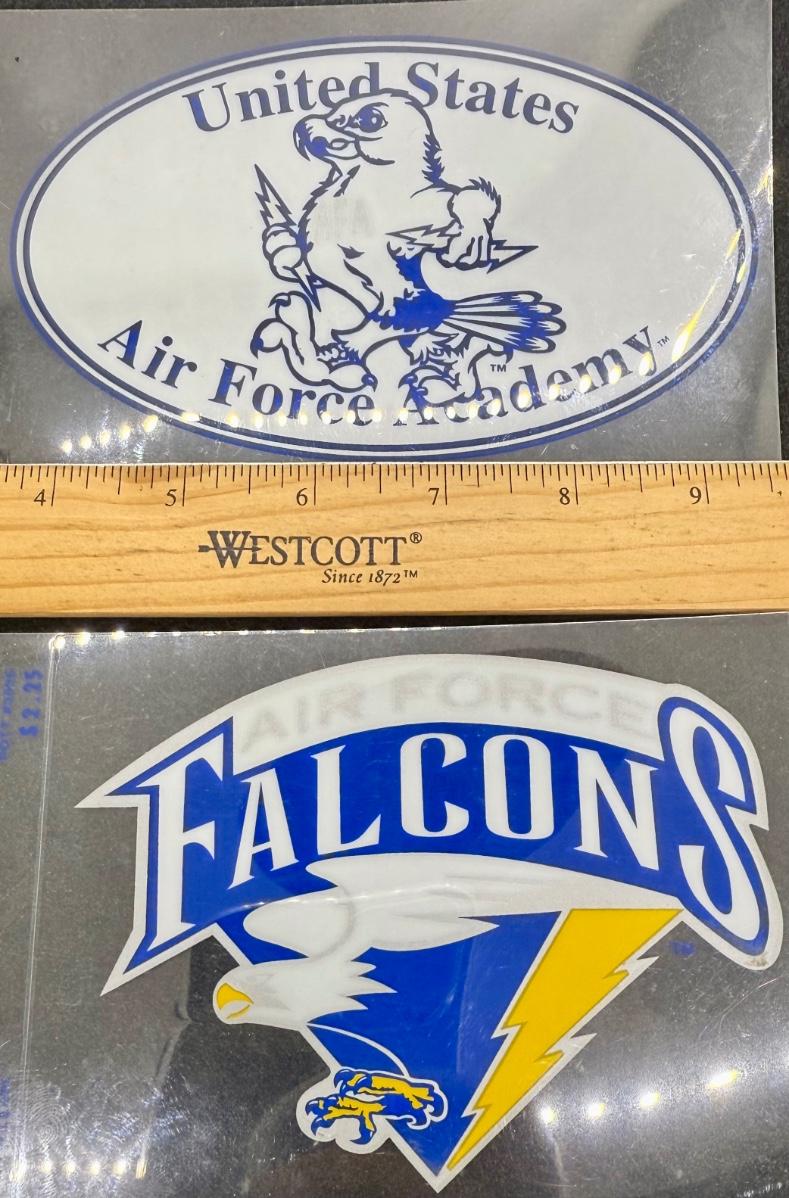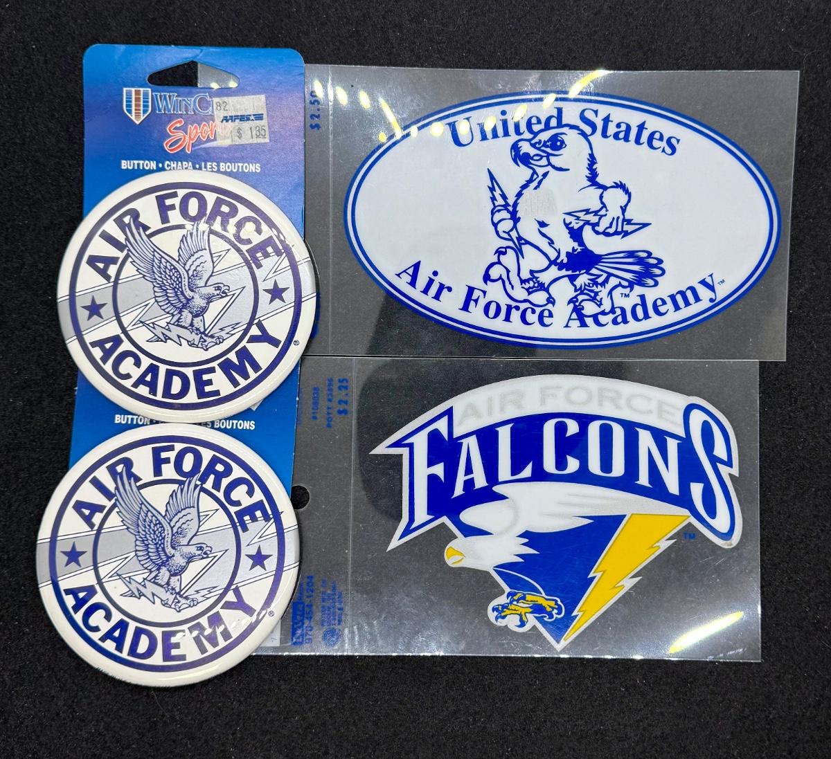 2 pinback Falcon buttons and 2 full color window decals. In new condition.