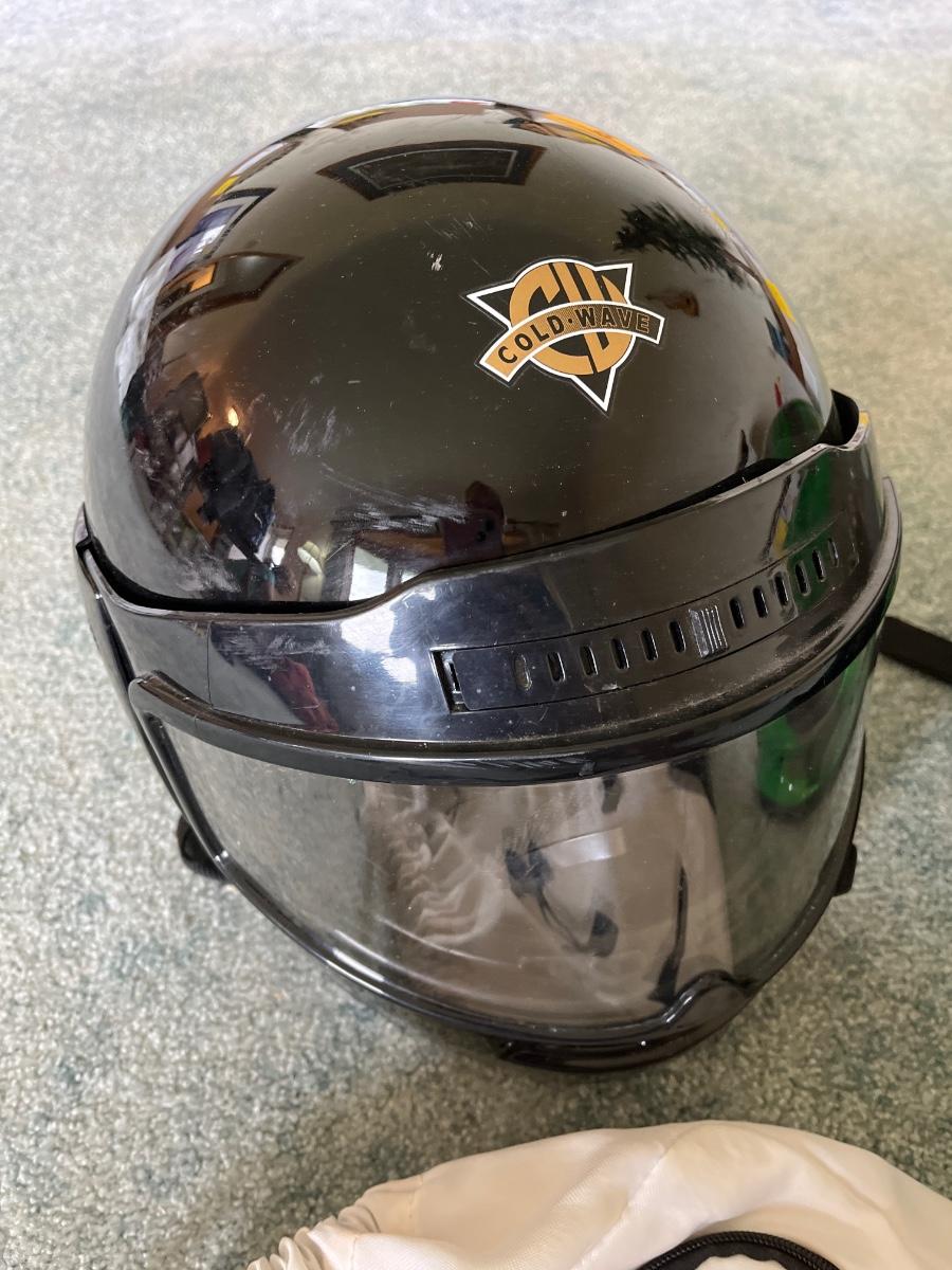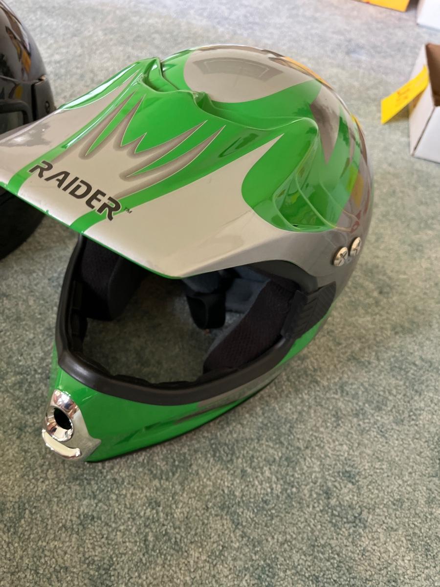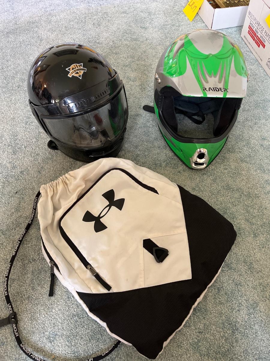 See pictures. Appear to be adult helmets Green is large and black is XXL.
