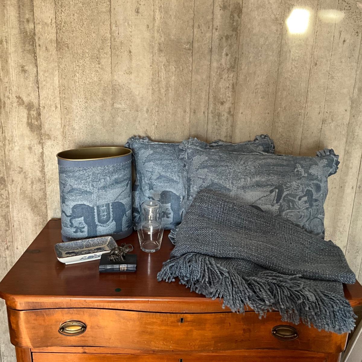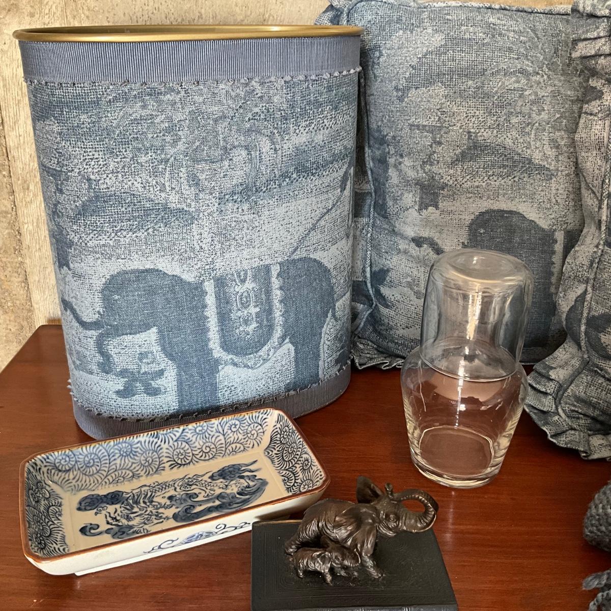 UA Custom Made Blue Elephant Pillows and Waste Can, Tray and Elephant Paperweight