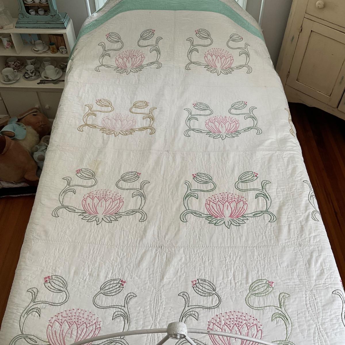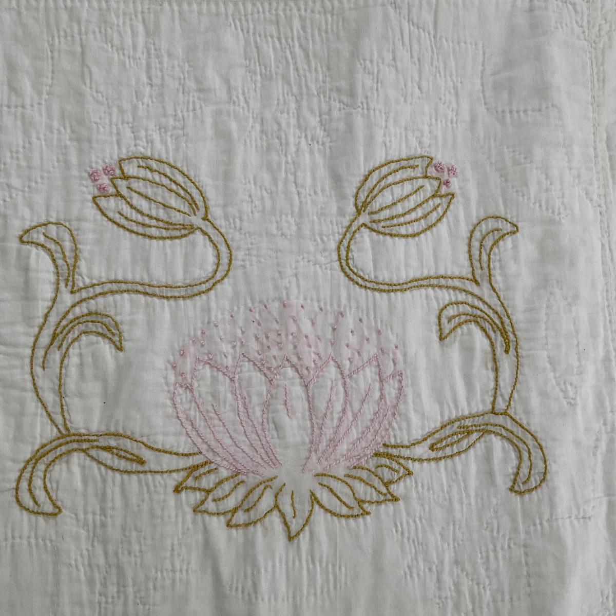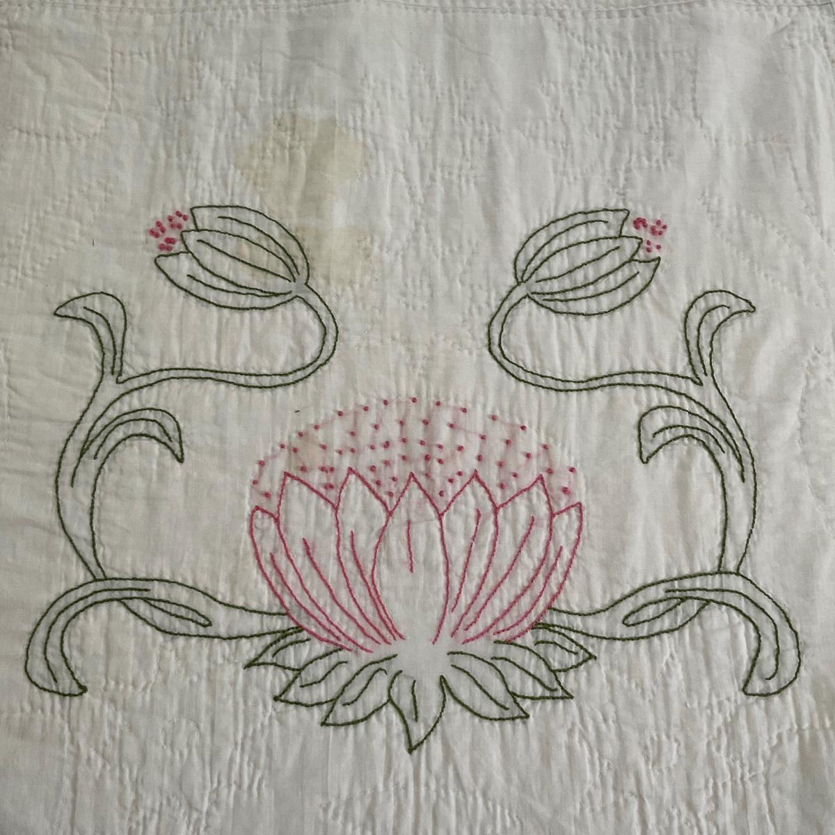 UA728 Antique Twin Lotus Flower Handmade Quilt