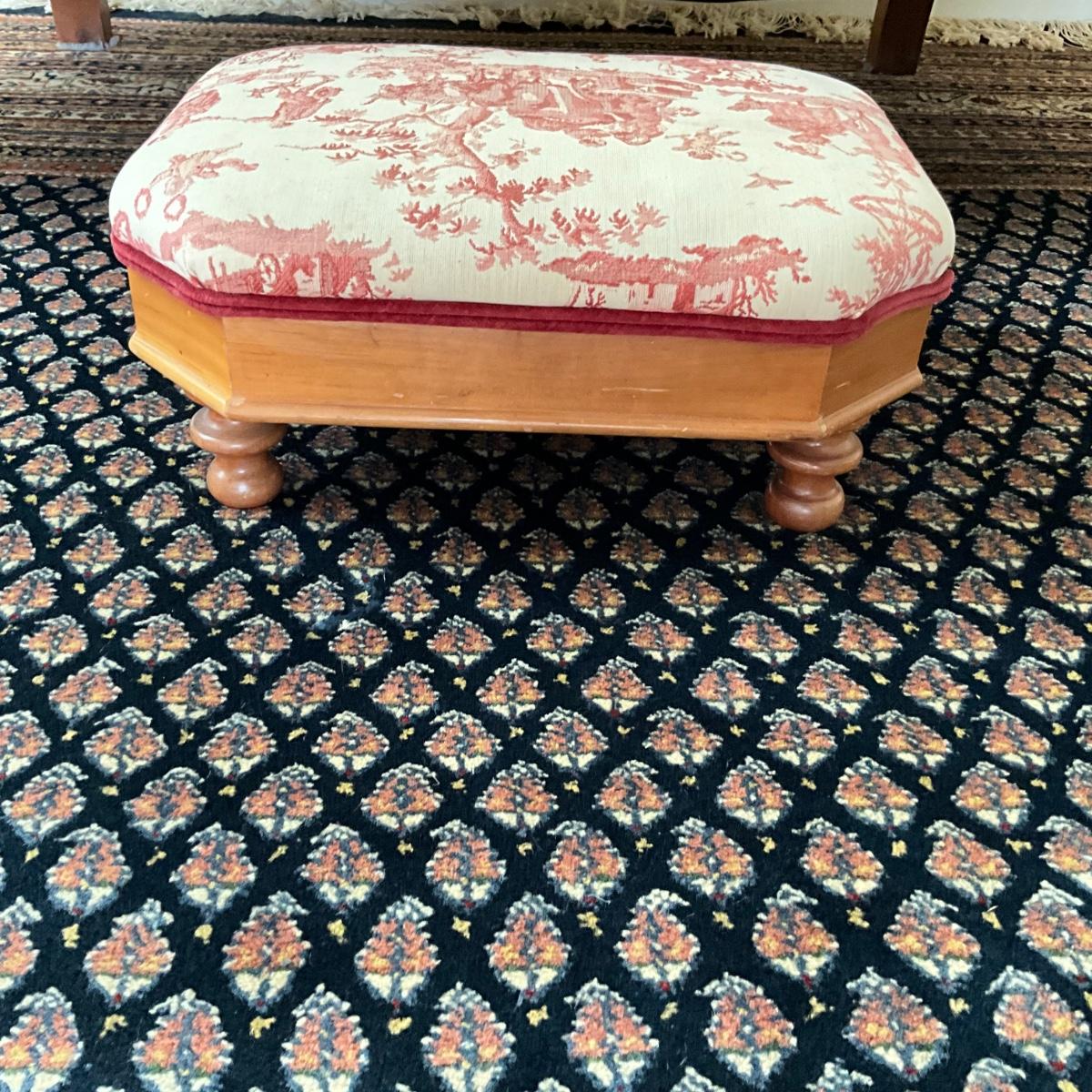 UB1164 Antique Victorian Walnut Toile Upholstered Loveseat with matching Stool