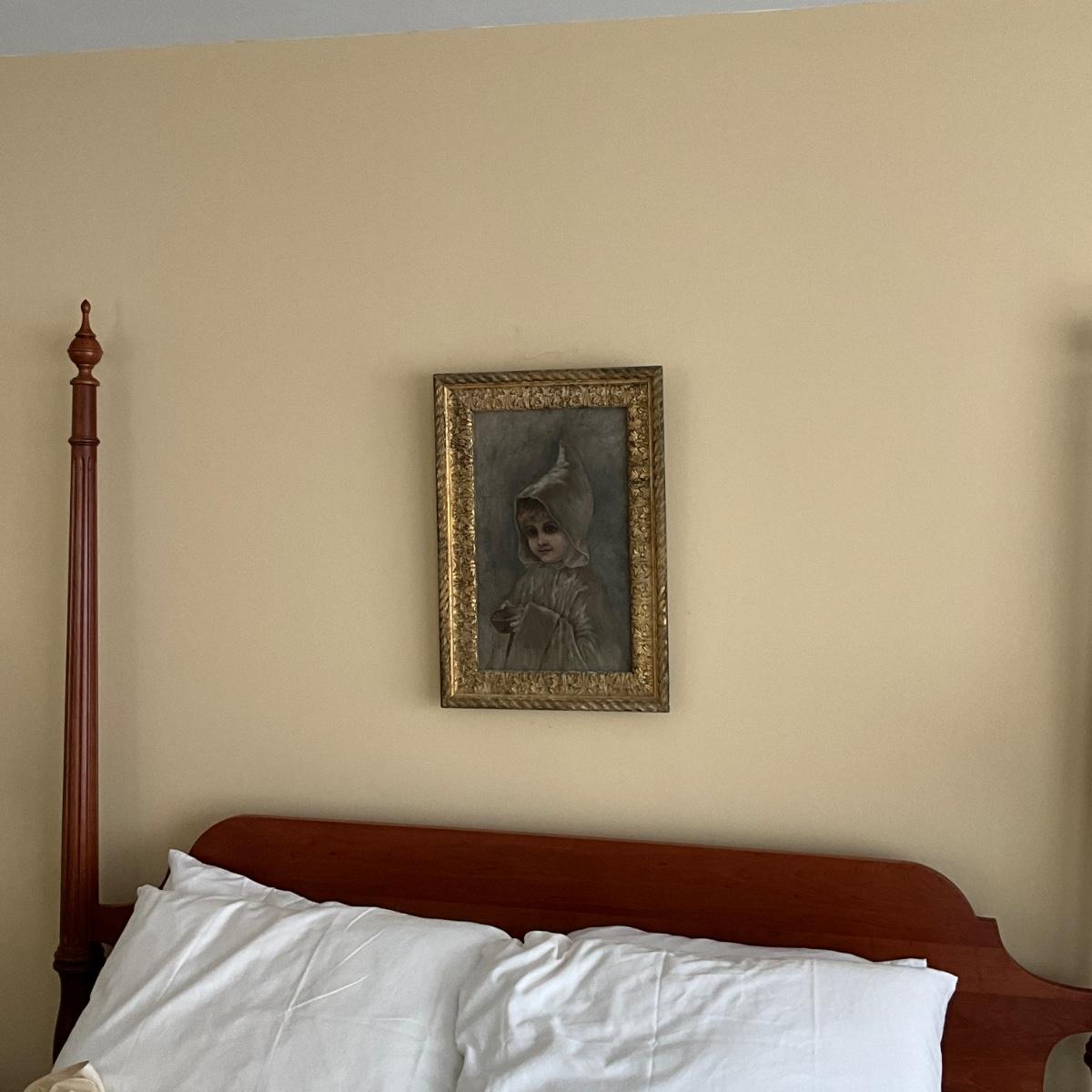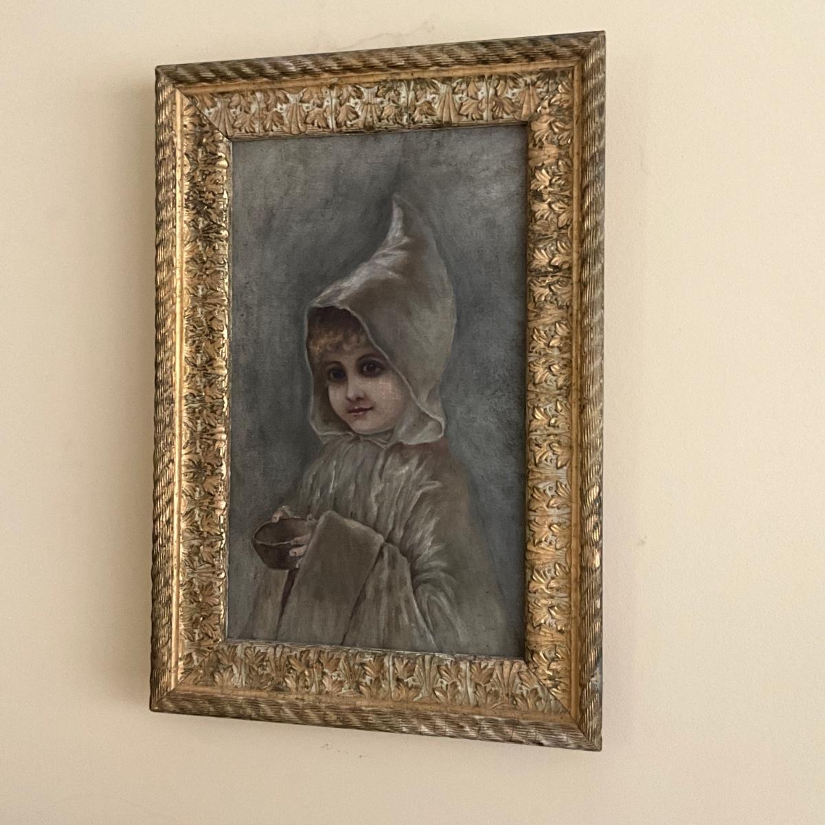 UB1174 Antique Victorian Oil on Canvas Girl with Bowl