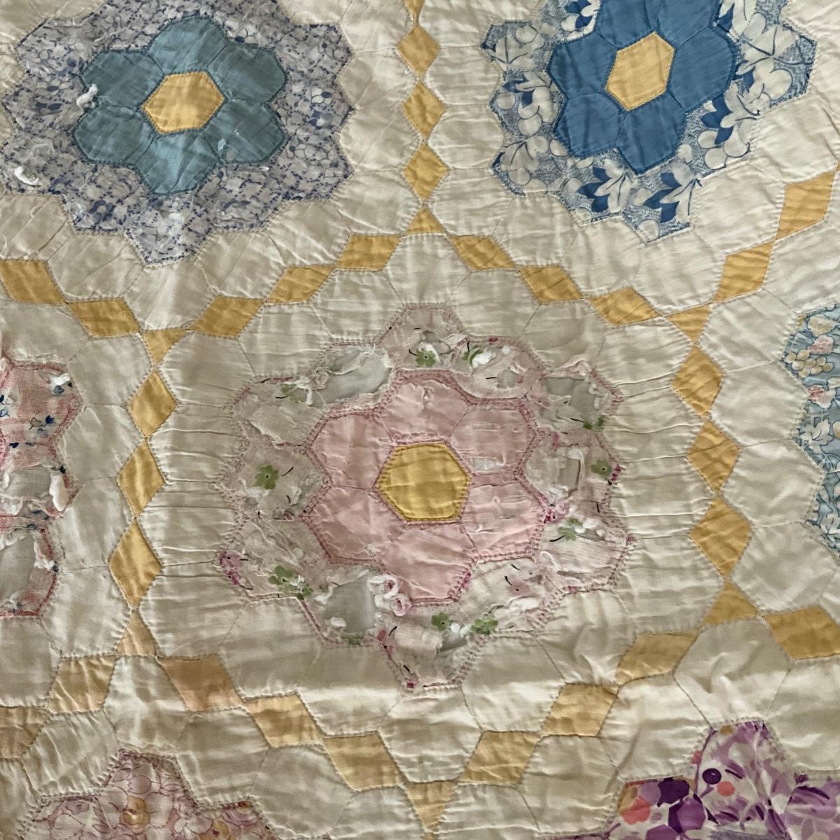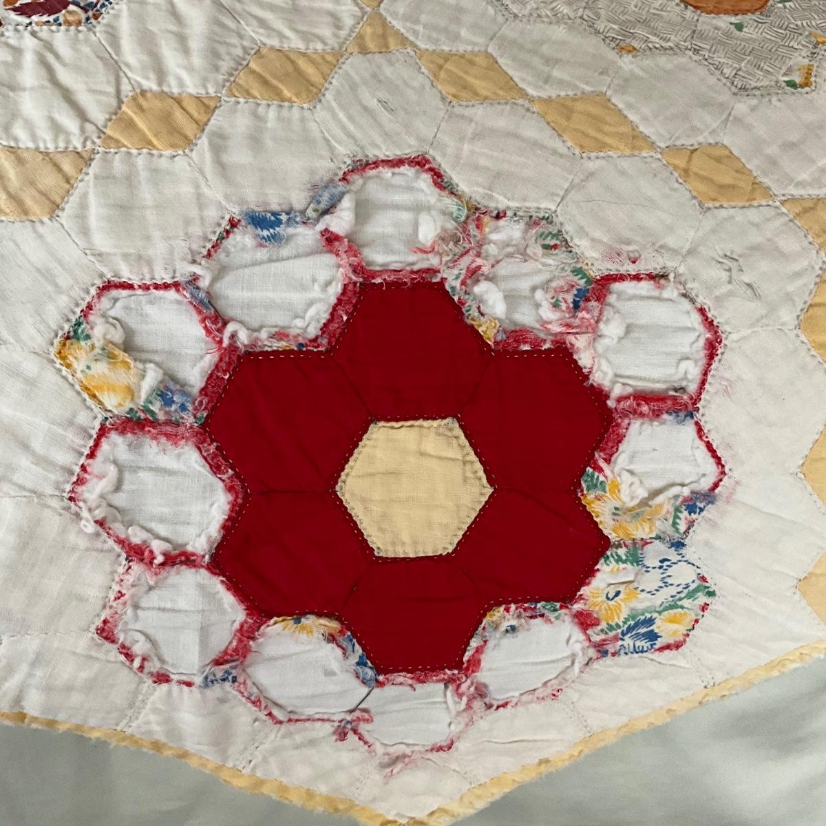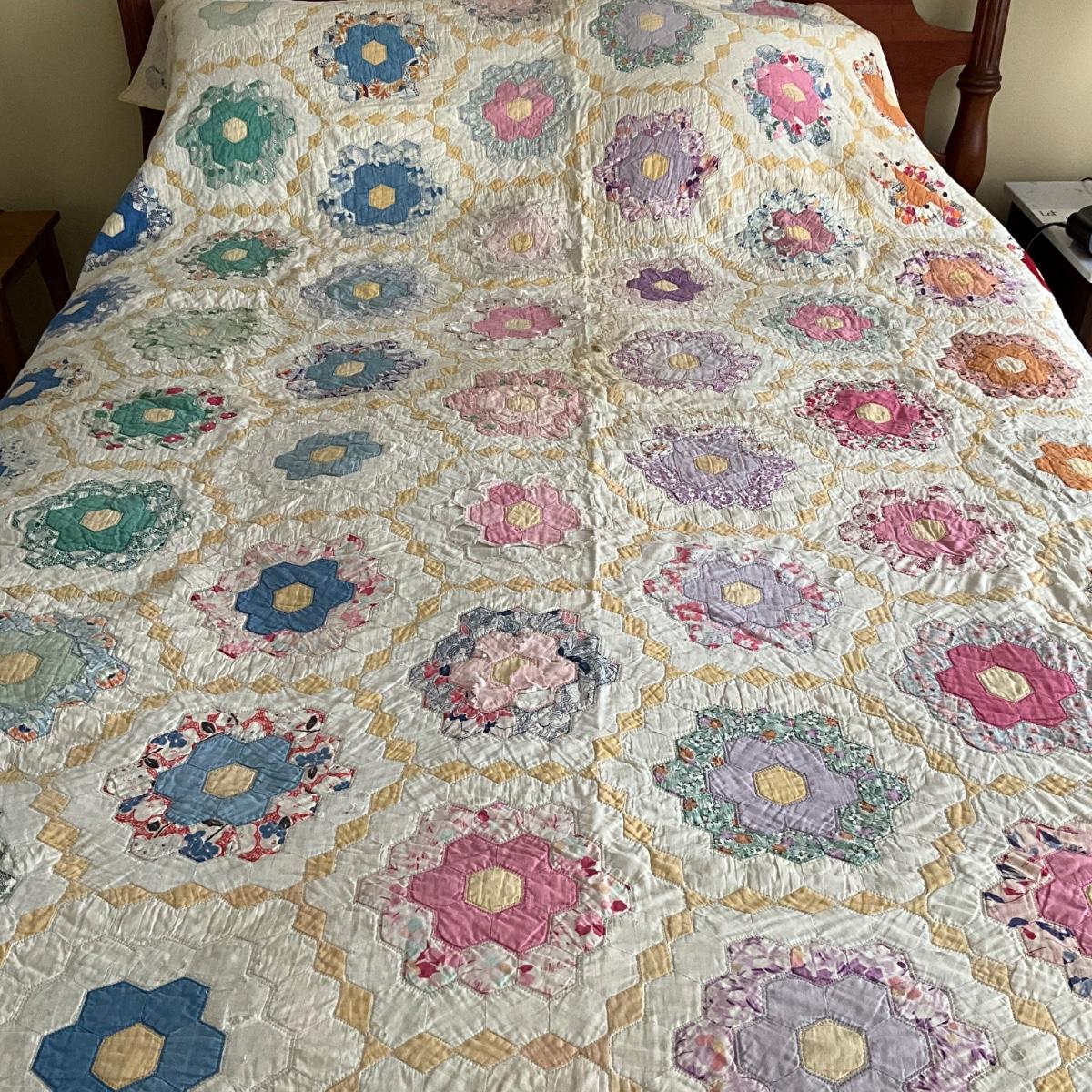 UB1182 Antique Handmade Grandmother's Flower Garden Quilt