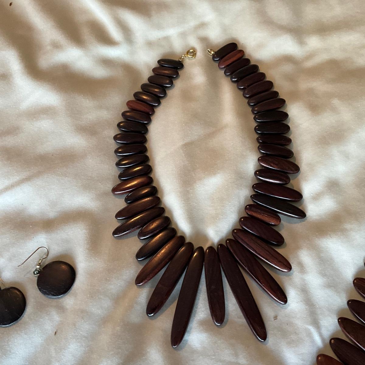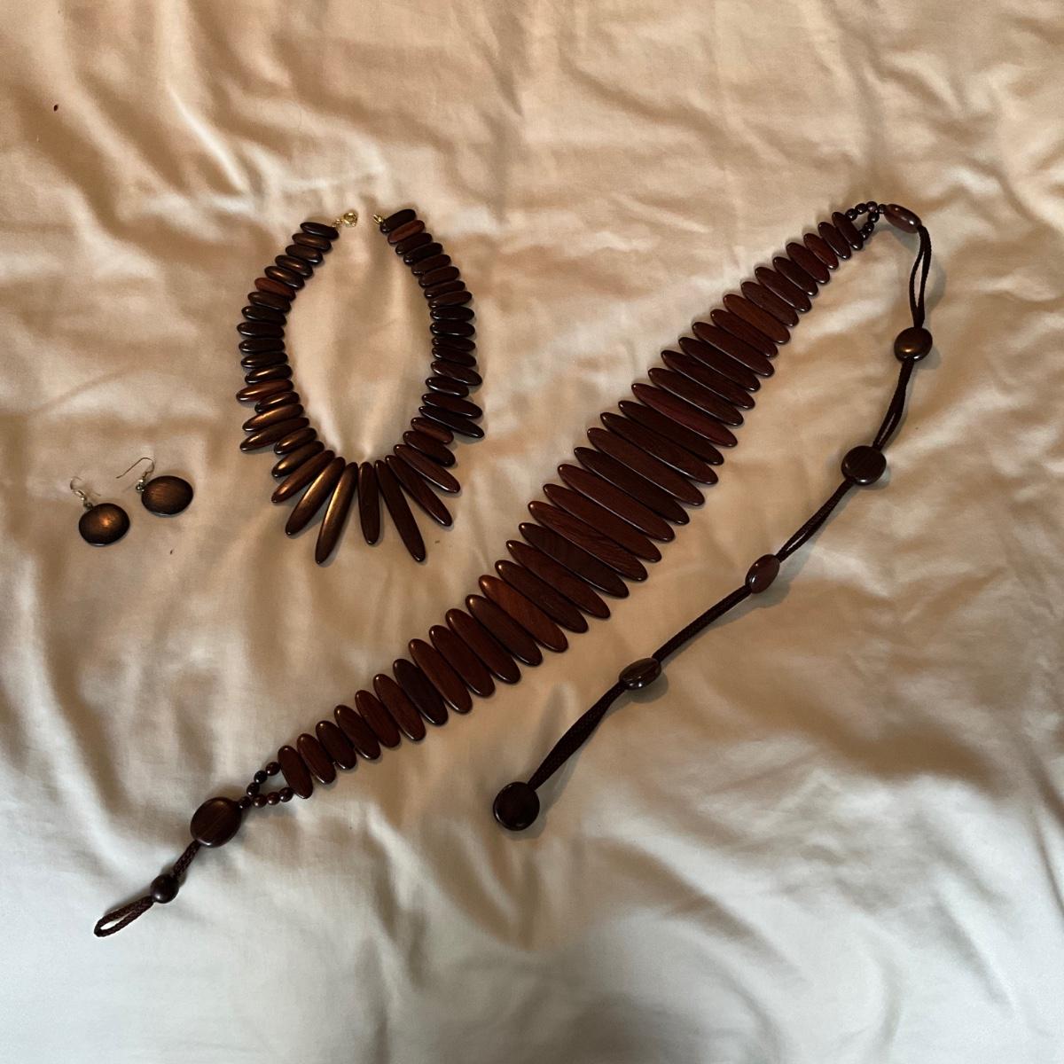 UB1211 Three Piece set of Costa Rica Exotic Wood Necklace Earring Set with Matching Belt