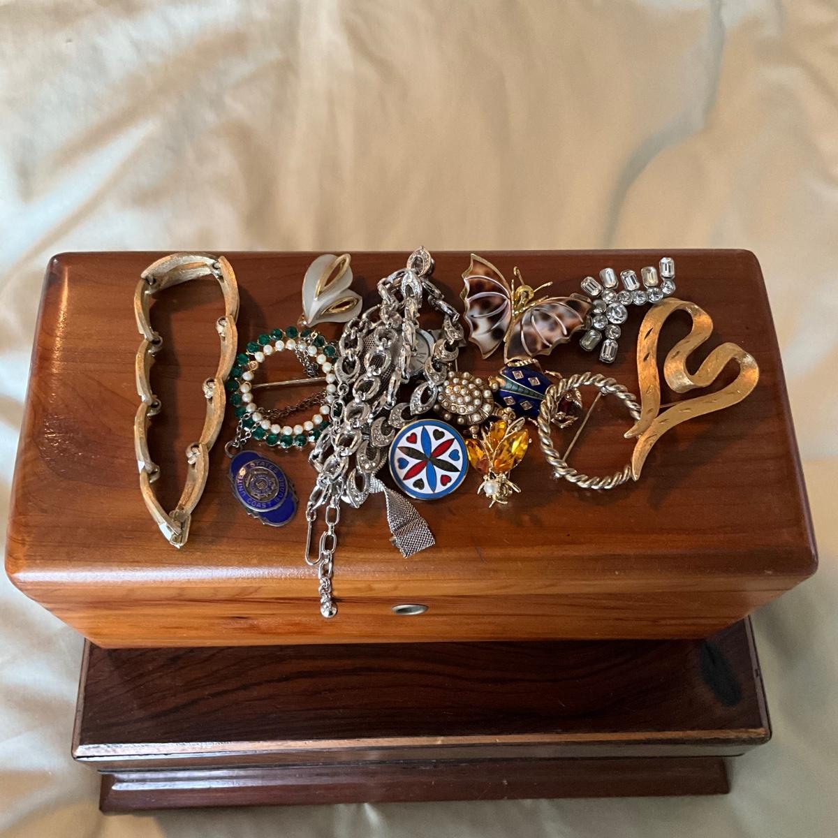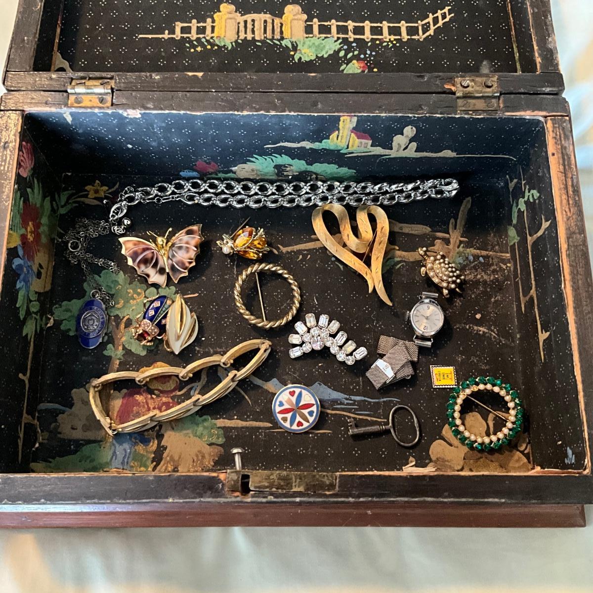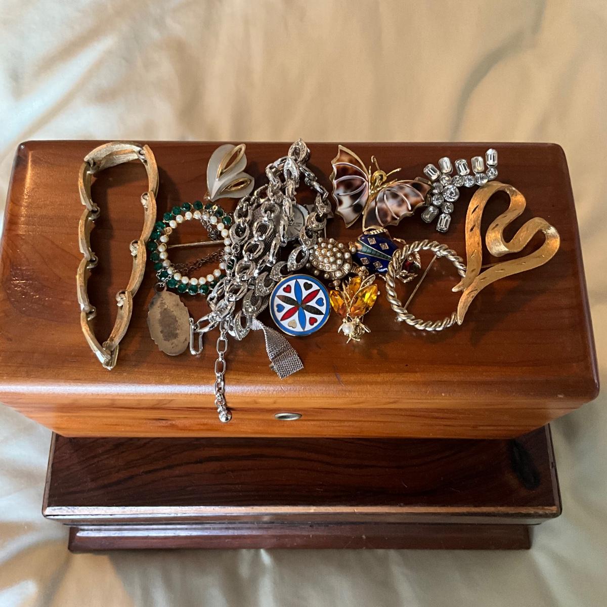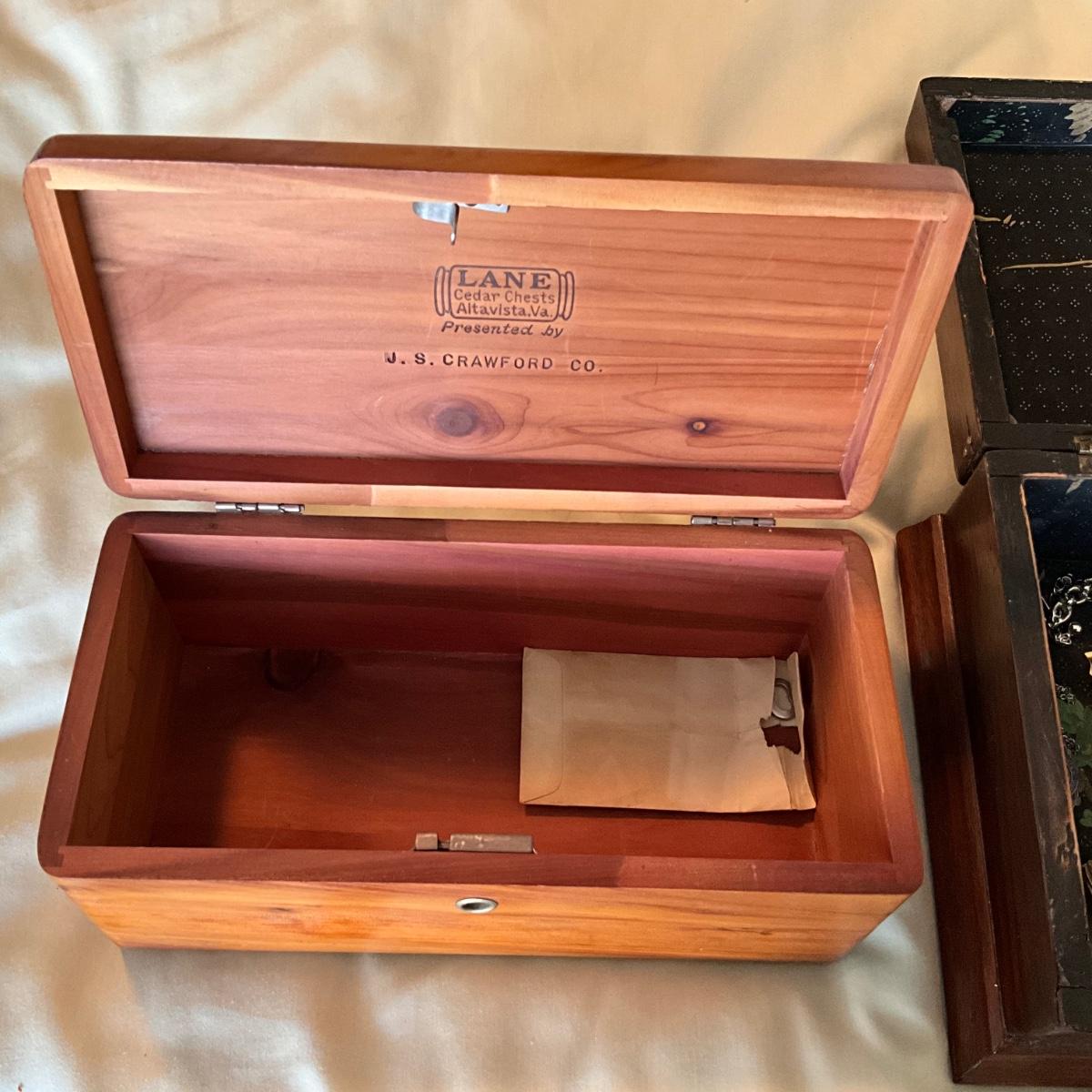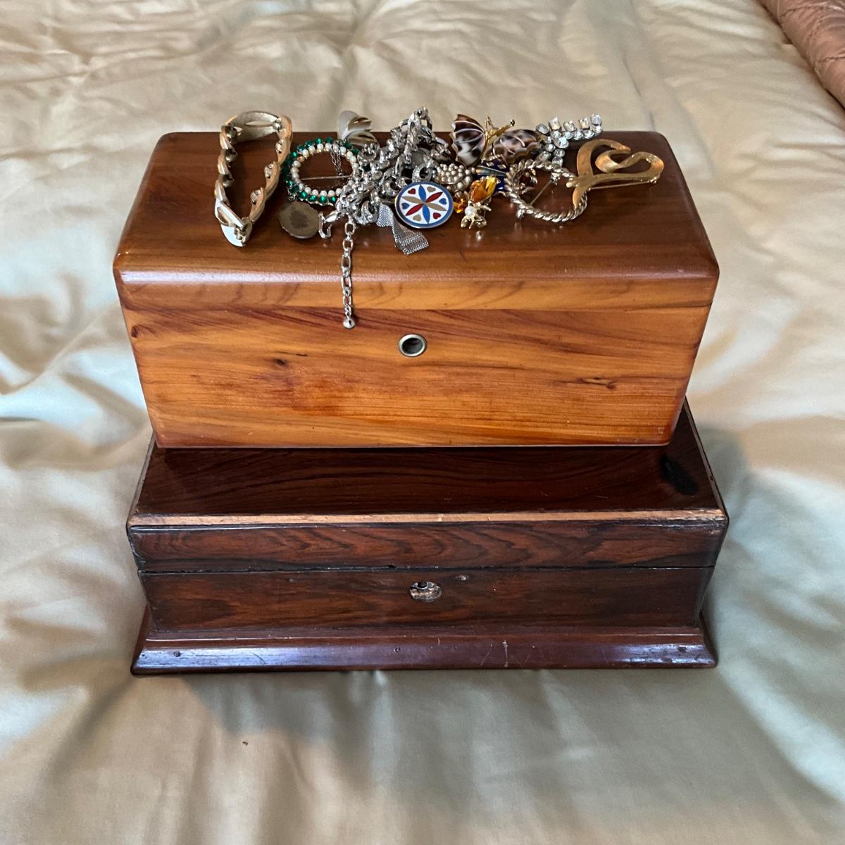 UB1212 Lot of Two Wooden Jewelry Boxes, Asian & Cedar with Costume Jewelry