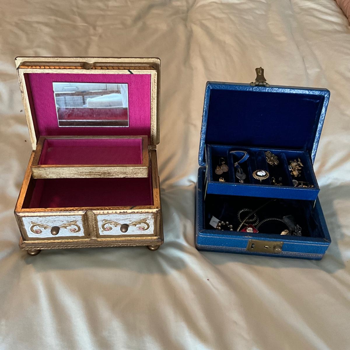UB1213 Set of Two Vintage Jewelry Boxes with Costume Jewelry
