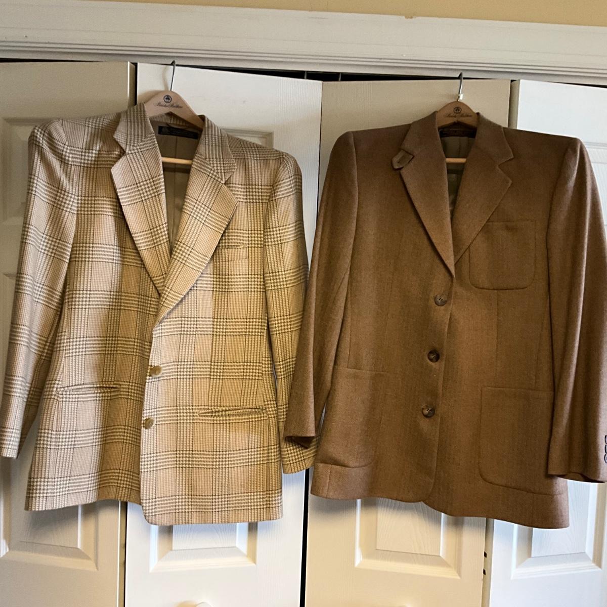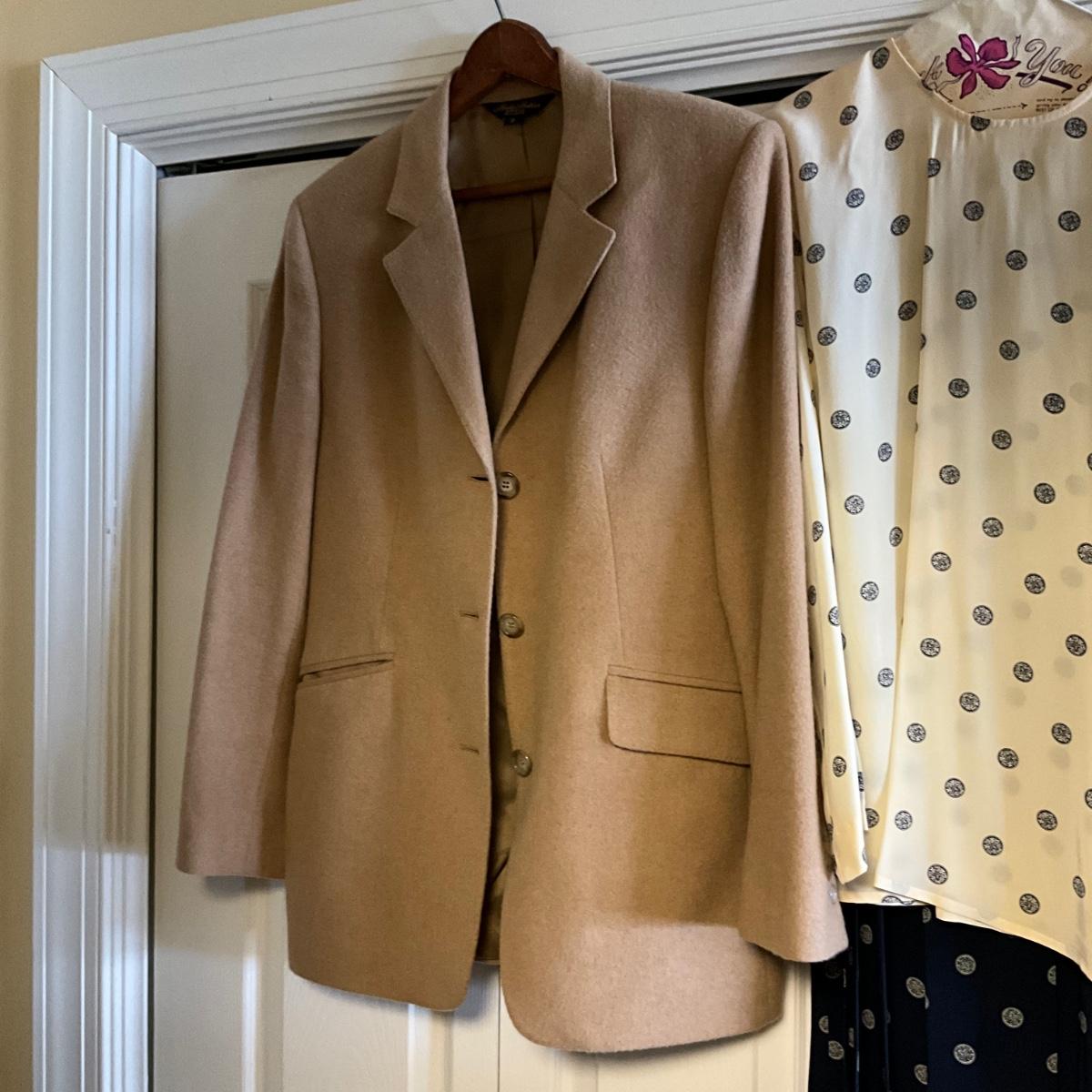 Suit jacket size 8 Camel Hair Jacket , kilt skirt, Navy blue dress with brass buttons, wool blazers size 4/6/8