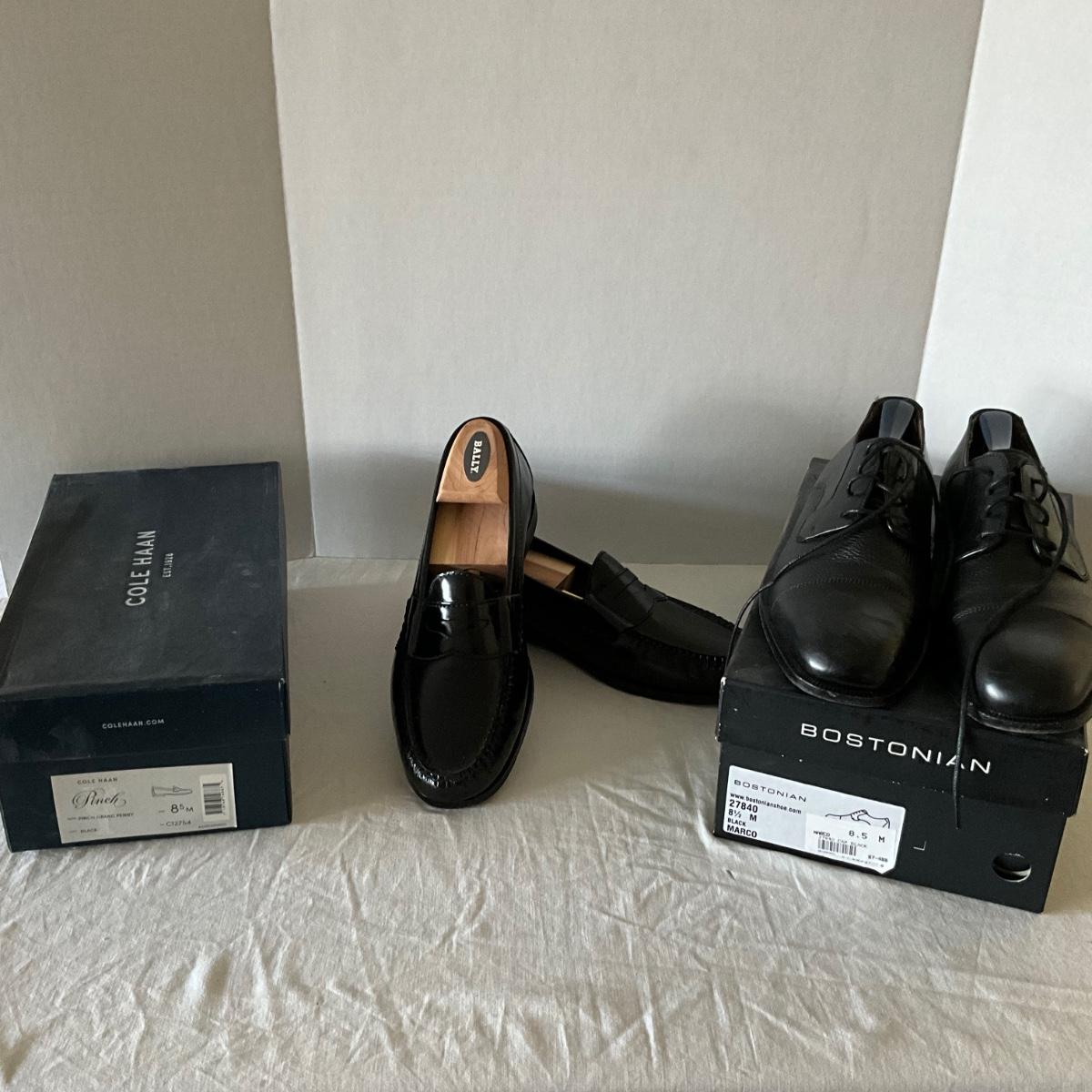 UB2125 Like New Mens COLE HAAN, BOSTONIAN Black Dress Shoes Size 8.5 Med