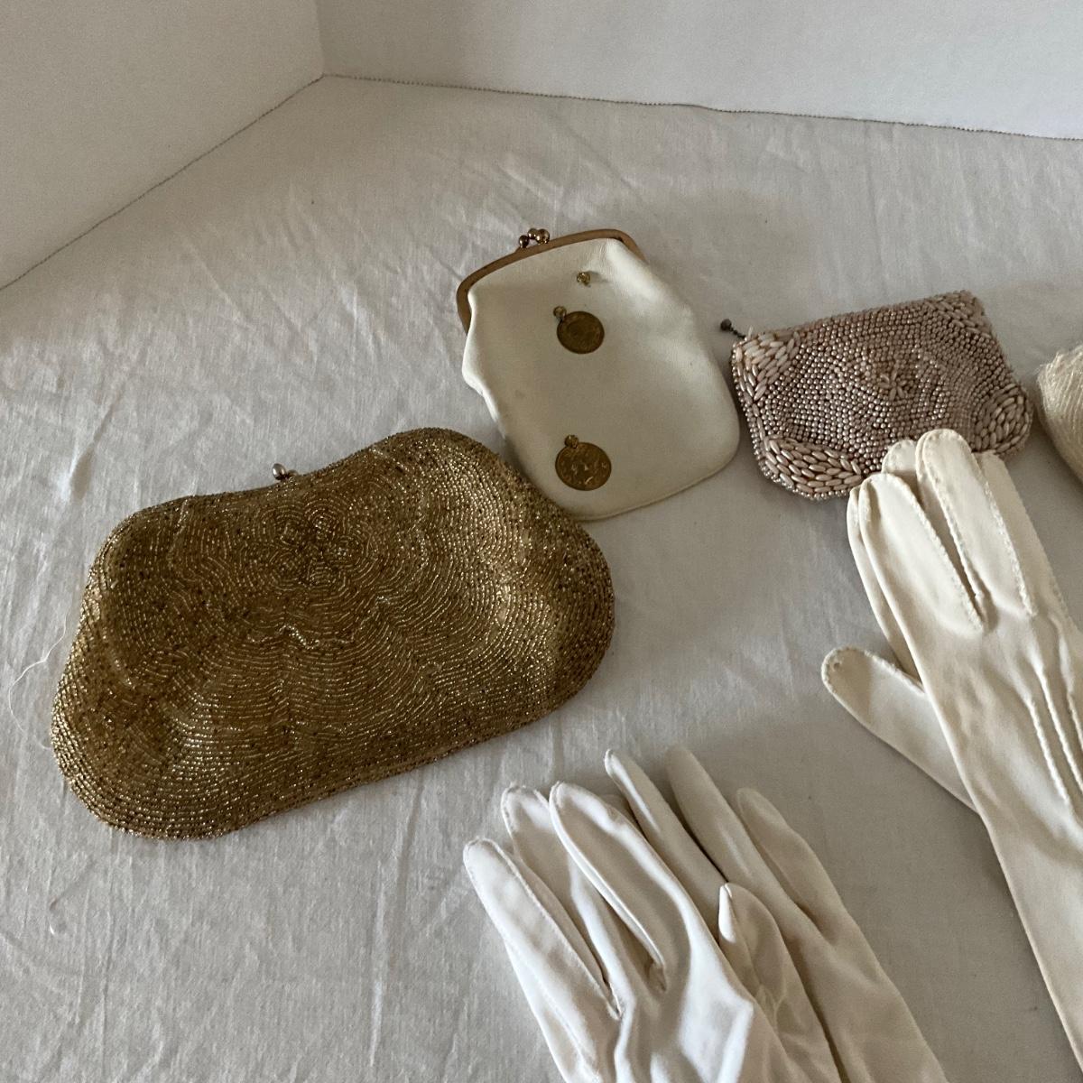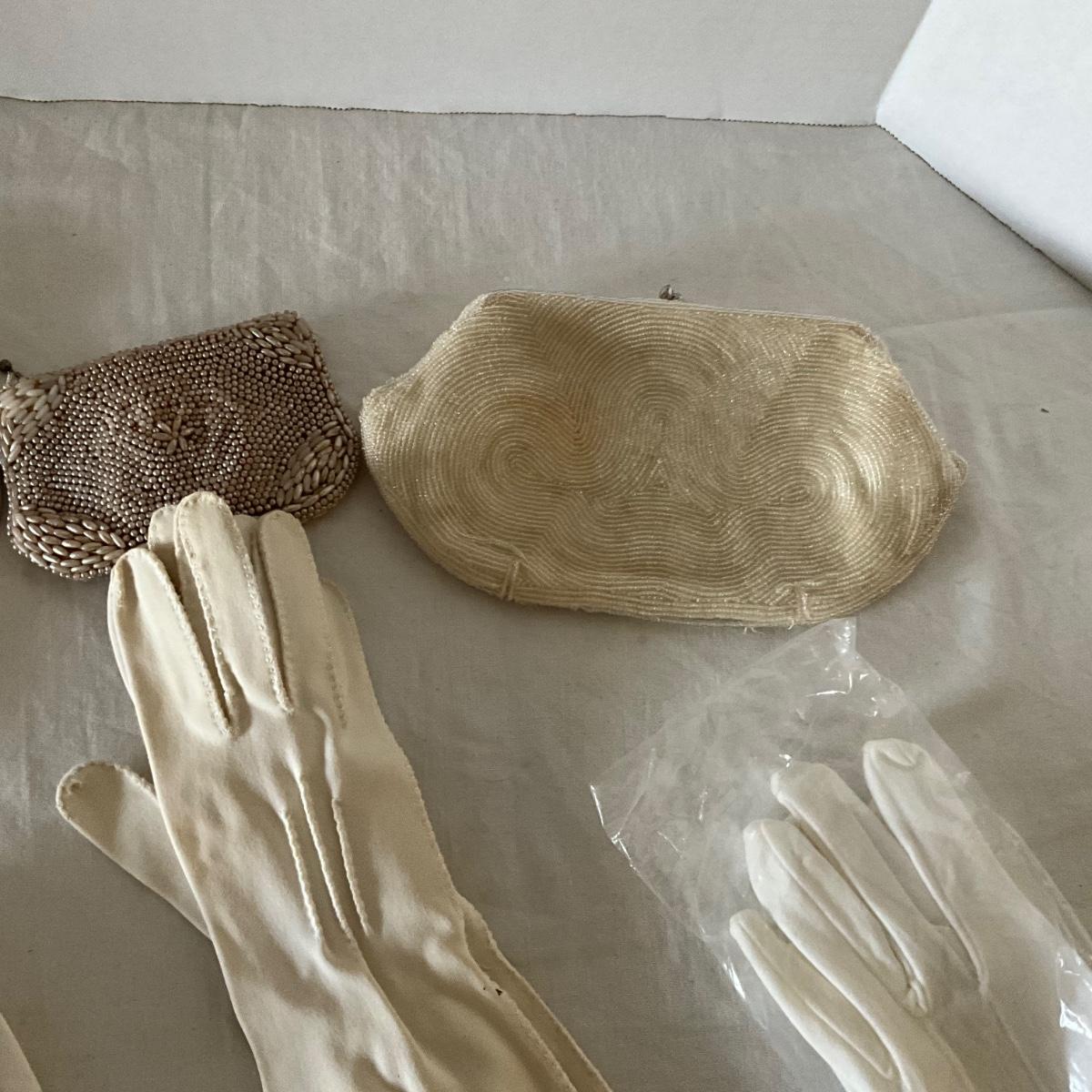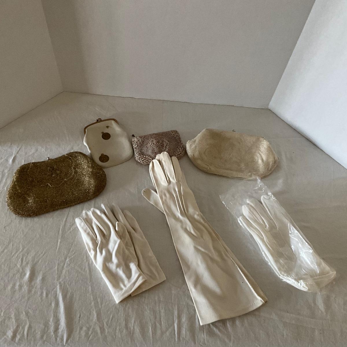 UB2133 Lot of Ladies White Cotton Dress Gloves and Evening Bags