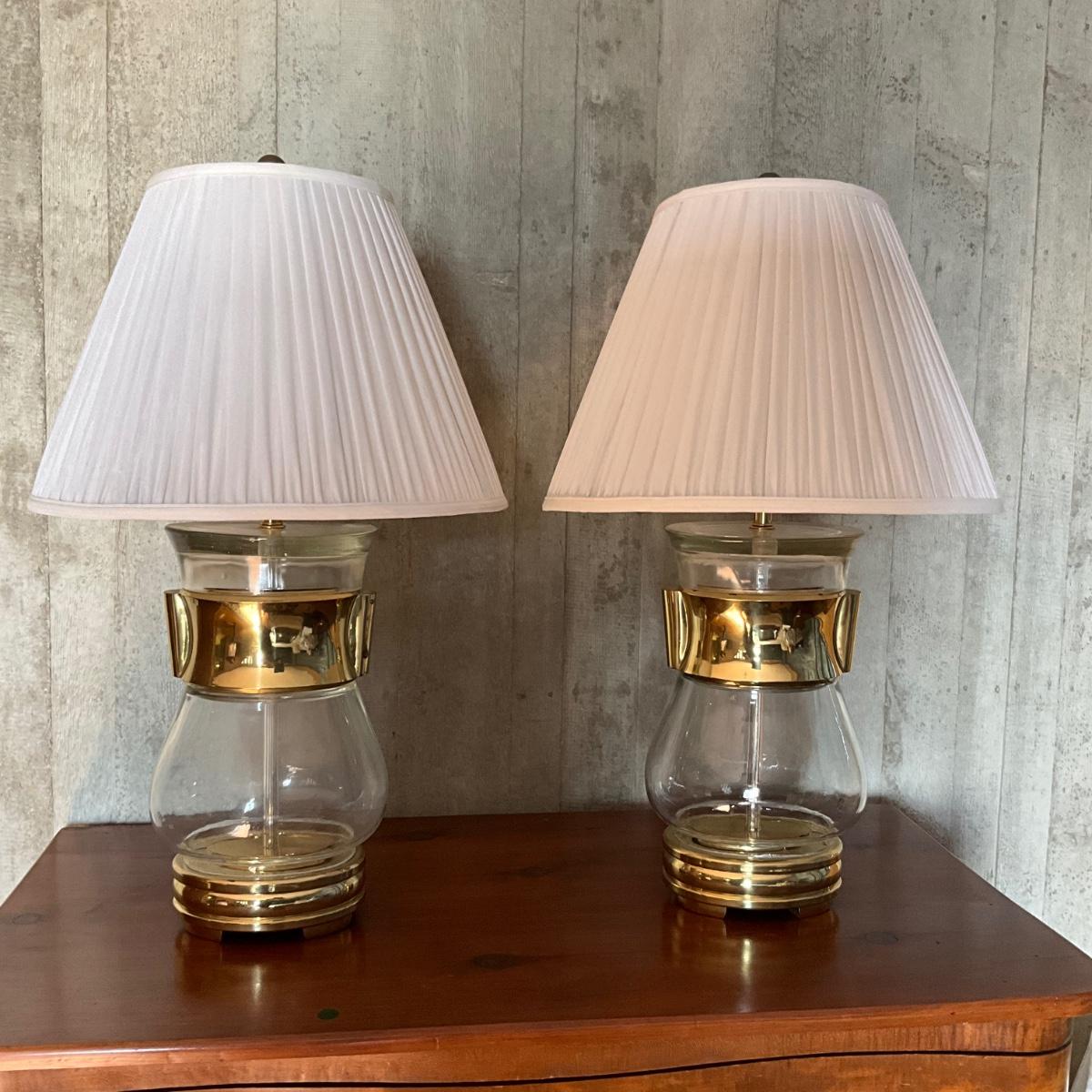 UB780 Pair of Vintage Chapman Glass Brass Lamps