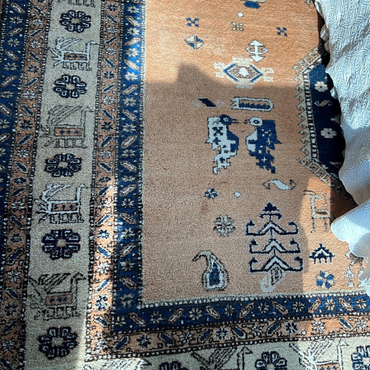 UB788 Vintage Blue and Pink Persian Oriental Wool Rug 9'6" x 12' 4"