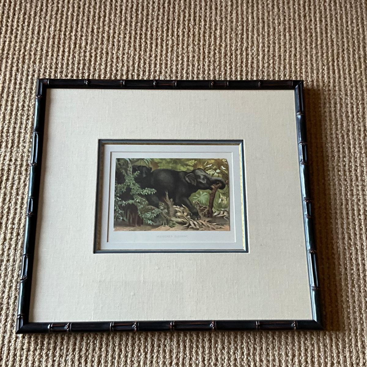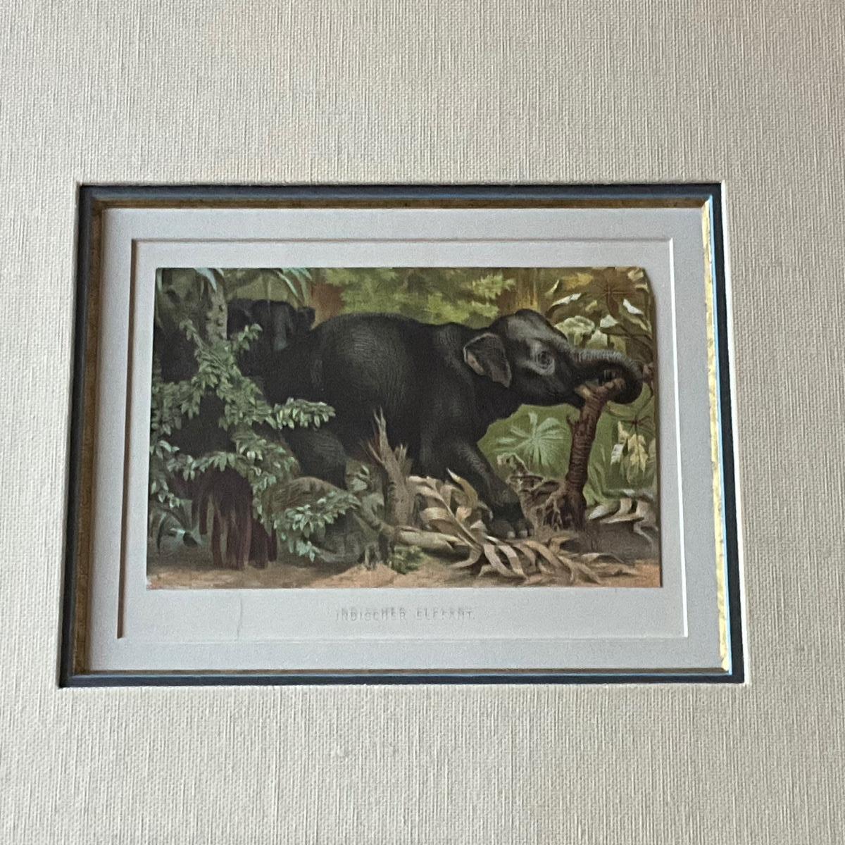 UB794 Antique Framed Indischer Elephant Color Lithograph
