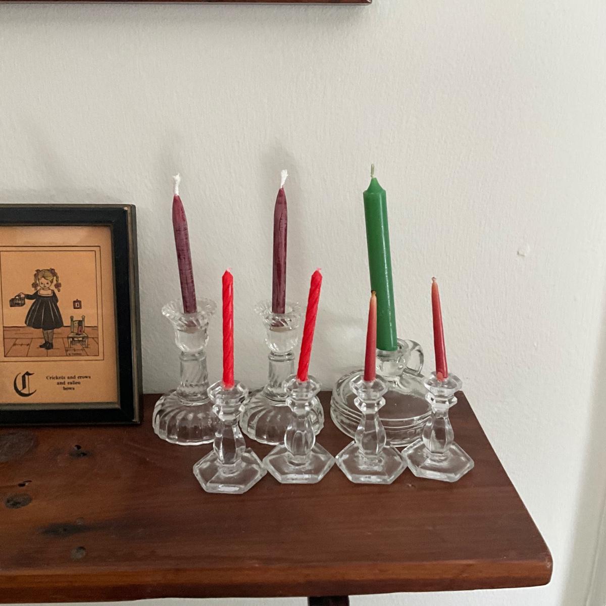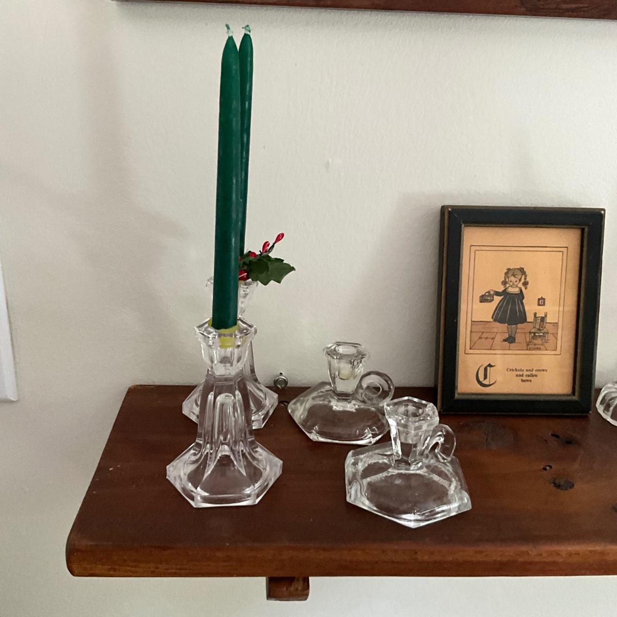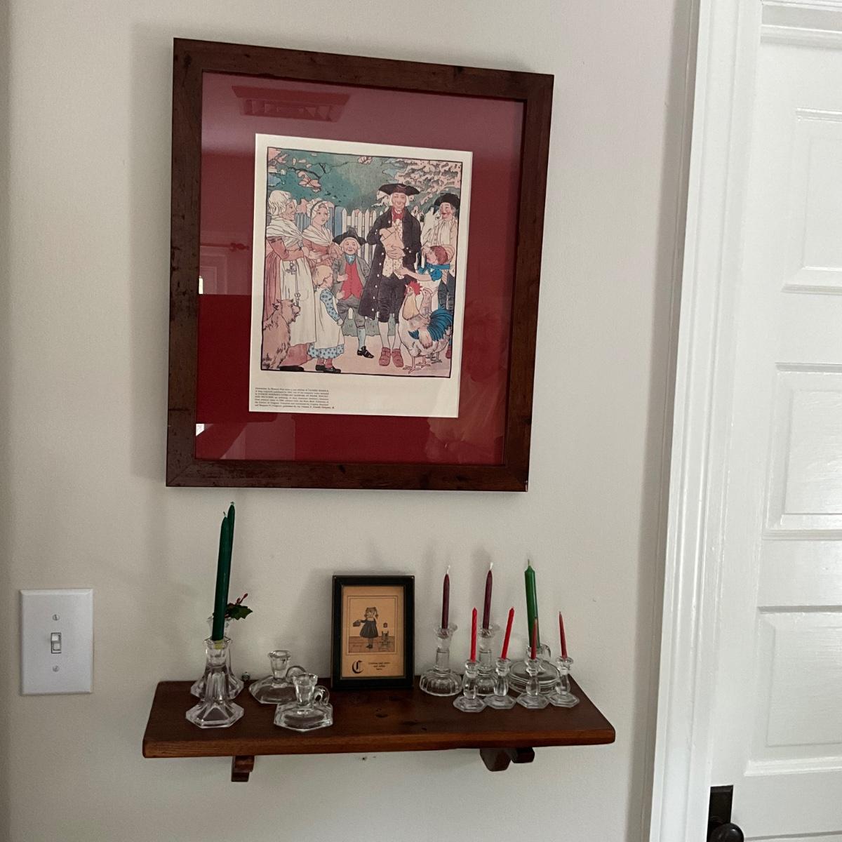 UBA1261 Vintage Yankee Doodle Framed Print with Wall Shelf and Mini Glass Candlesticks