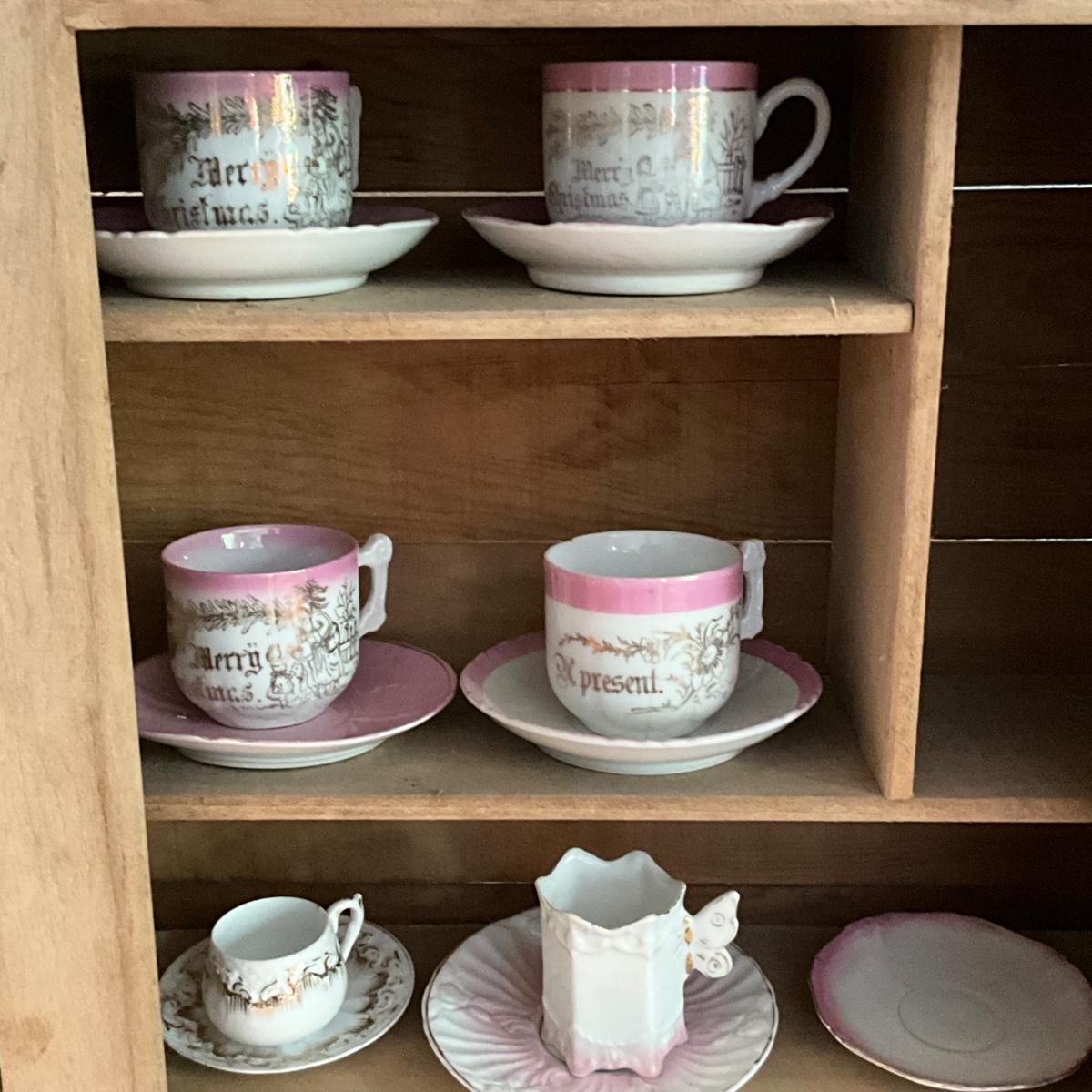UBB1311 Vintage Wall Cabinet with Merry Christmas China Set