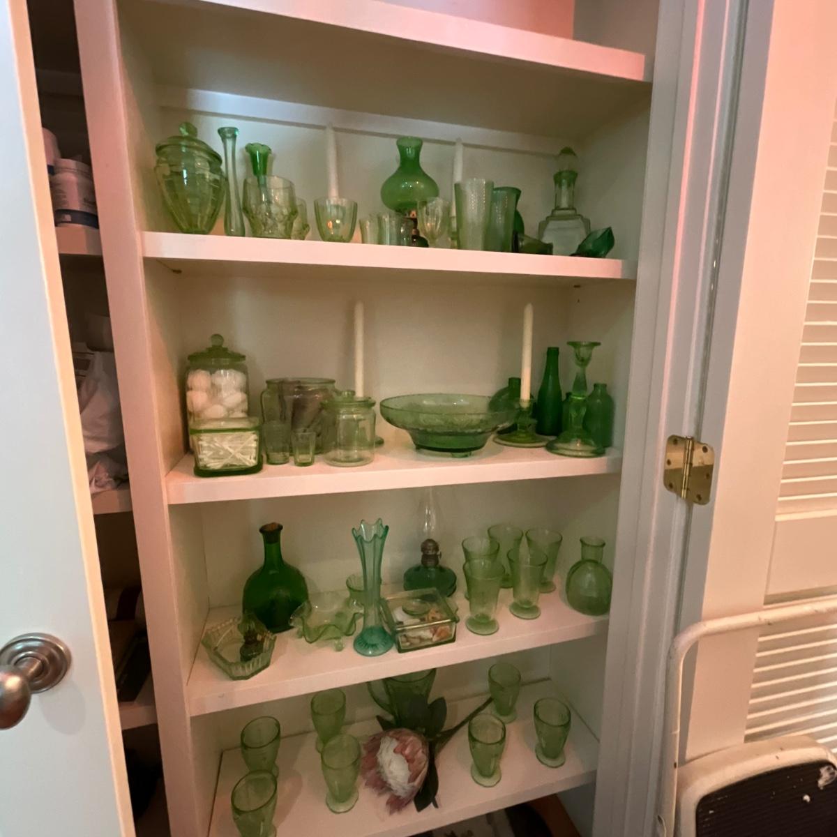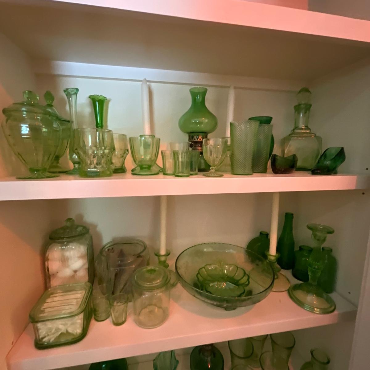 Comes with four shelves of green glass